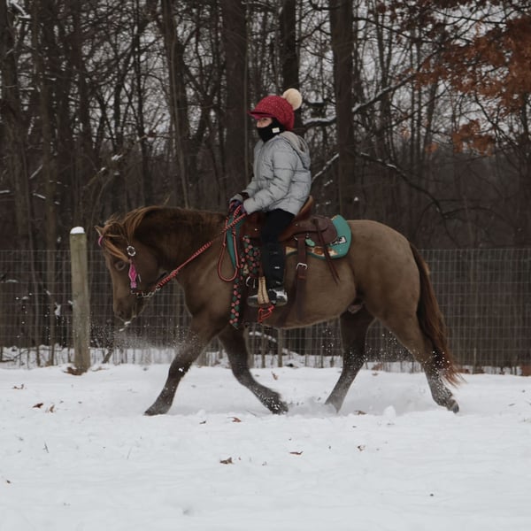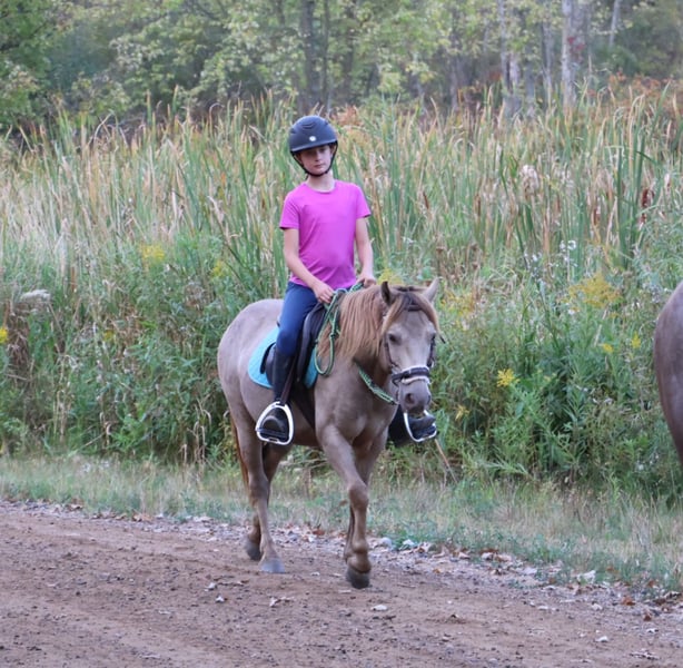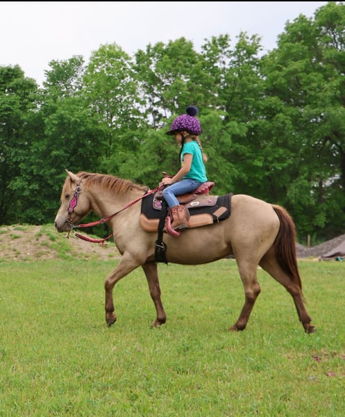 🎄𝐓𝐇𝐄 𝑯𝒐𝒍𝒊𝒅𝒂𝒚 𝐂𝐋𝐀𝐒𝐒𝐈𝐂🎄 Happening now thru MONDAY | DECEMBER 15th - Available EXCLUSIVELY on HorseBid's website! For more details and to register visit: www.Horsebid.com CONSIGNOR CONTACT: Blackstone Stables 248-390-6831 LOCATION: Howell MI BREED: Welsh REGISTERED: No COLOR: Champagne HEIGHT: 12.1 AGE: 5 GENDER: Gelding Stop your scrolling! Here is the ultimate safe AND talented pony with show experience and trick training! I’m proud to introduce and offer Tony The Pony! He is the pony that kids dream of owning and that parents trust to keep their kiddos safe. Tony is a unique champagne color with a beautiful thick mane and tail. He is 5 years old and stands a stout 12.1hh. Tony is a pony anybody can ride! He walk trot and canters on a loose rein, steers with leg and seat, has flying lead changes, and has excellent breaks. For the last couple months, Tony has been working in our lesson program teaching all types of riders including the first timers to the more advanced students that jump and show. Tony has attended several schooling shows! He performed well in the chaos and won a few blue ribbons! Tony also rides western! He trail rides like an old pro. Nothing phases him out in the woods. He’s seen it all from the hills, creeks, ponds, thick brush, logs, mud, and wildlife. Just when you think Tony couldn’t get any better well he is also trick trained! He knows how to sit and lay down on command. A tap on his left shoulder blade or on his left front pasture and he lays right down to get on or off. Tony has wonderful ground manners. He will ground tie, cross tie, or tie to a post and stand all day to be groomed. He also stands for other things like saddling, farrier, mounting/dismounting, bathing etc. He is also well broke to ride. Hook him up and head to town, a parade or take him sledding in a snowy day, he’s game to do it! He is a finished, safe, quiet, bombproof pony with absolutely no holes in his training! On top of that he has the talent and training to take your young rider to the winners circle. What more could you want in a kids pony?!?!? Come meet Tony and he’s sure to steal your heart! Located in Howell Michigan