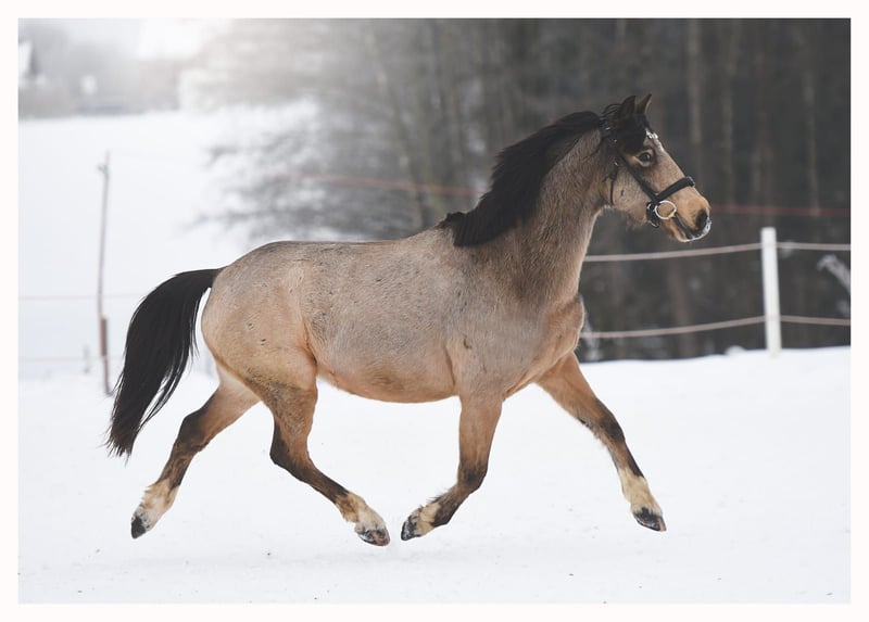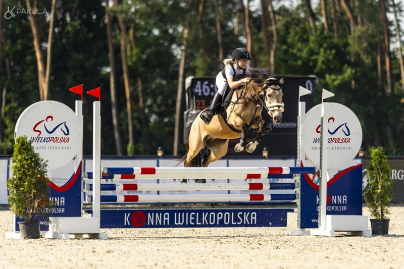 140 cm wzrostu 7 lat. maść jelenia. rasa - kuc wierzchowy bardzo pracowity kuc, uwielbi skakać , jest bardzo waleczny, gdy nie pasuje odskok on i tak zawsze podejmie skok i dodatkowo nie lubi dotykać drągów co jest bardzo dużym atutem tego kuca. Regularnie startujący w zawodach ogólnopolskich w grupie C. Starty również na wysokościach 100 cm nie sprawiają mu problemu. Jego pierwsze poważne zawody Halowy Puchar Polski 2025 ukończył na 10 miejscu. Zdrowy, Łapiący za oko. Peleryny pod czas jazdy i inne pomysły dziecka nie sprawiają mu problemów. Łatwy w załadunku i transporcie. Bardzo grzeczny w obejściu. Dziecko robi przy nim wszystko samo . Ma bardzo dobrą głowę , konie wokół niego mogą szaleć na placu a on i tak spokojnie podąża z dzieckiem dalej.
