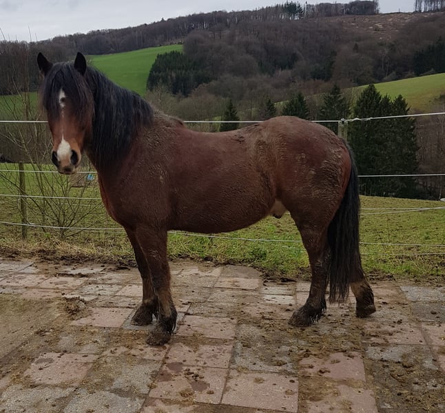 Bitte den ganzen Text lesen und bitte bei Fragen melden, damit wirklich alles geklärt. Danke. Leider müssen wir unseren Wallach Merlin - ein Welsh Cob C Ardenner Mix - abgeben, aber wir denken, es ist das Beste für ihn. Er hatte bisher einen etwa gleichaltrigen Kumpel, doch dieser ist nicht mehr bei uns und die anderen Pferde sind viel älter, so dass er da nicht richtig in die Gruppe passt und nicht zurechtkommt. Er braucht einen erfahrenen, geduldigen Pferdemensch. Wir suchen ein Zuhause, wo er endlich für immer ankommt und nicht wieder abgeschoben wird. Wir hatten ihn schon zweimal vermittelt und dachten, es wäre ein gutes Zuhause, doch beide Male wurde er nach 1/2-1 Jahr wieder zurückgegeben. Daher lest euch bitte alles gründlich durch, wenn etwas unklar ist, bitte nachfragen! Und bitte, bitte nur melden, wenn Merlin wirklich für IMMER im neuen Zuhause bleiben darf. Wir wollen ihm so eine Enttäuschung wie die letzten beiden Male nicht wieder zumuten. So, nun also zu Merlin: Geschlecht: Wallach Rasse: Welsh-C Tinker Mix Geboren: 12.06.2019 Stockmaß: 145 cm Ausbildung: angeritten, allerdings vor 3 Jahren, man muss also noch viel üben und Geduld und viel Zeit mitbringen, Tierarzt und Hufschmied sind kein Problem Charakter: sehr menschenbezogen (wenn man sein Vertrauen gewonnen hat), sehr sensibel und intelligent Sonstiges: Equidenpass ist vorhanden, geimpft ist er auch, kein Anfängerpferd Merlin ist ein sehr sensibles Pony. Man muss Geduld aufbringen, um sein Vertrauen zu gewinnen, aber wenn Merlin einem sein Herz schenkt, dann vertraut er einem auch richtig. Wenn er z.B. Angst hat, schaltet er generell seinen Kopf aus, gerät in Panik und läuft alles platt, was oder wer im Weg ist. Hat man sein Vertrauen, merkt man zwar das er immer noch Angst hat, man kann ihn dann aber dennoch langsam und vorsichtig vorbeiführen, ohne dass er davon stürmt. Aber wie gesagt, so ein Vertrauen aufzubauen braucht viel Zeit (und NEIN, viel Zeit bedeutet NICHT 2 Monate!).Merlin kennt das Fohlen-ABC (Halfter, Putzen, Tierarzt, Spaziergänge) und wurde vor ca. 3 Jahren angeritten, aber wirklich nur angeritten. Man muss mit ihm noch einiges üben, BEVOR man ihn reiten kann. Da er sehr sensibel ist, sollte man Geduld mitbringen und vorsichtig mit ihm umgehen. Er hat z.B. Angst vor Peitschen (seit wir ihn vermittelt hatten). Er ist aber auch sehr intelligent und kapiert recht schnell, wie etwas läuft. Er weis z.B. genau wo sein Futterplatz ist und dass er dort am besten einfach still wartet, dass der Futtertrog gebracht wird. Er hatte es recht schnell raus, dass das Futter so schneller kommt, als wenn man "Theater" macht. Ich wünsche mir für ihn ein Zuhause, wo er endlich ankommen kann und für immer bleibt. Der neue Besitzer/Die neue Besitzerin sollte sich viel Zeit nehmen, ihn kennenzulernen, sein Vertrauen zu gewinnen und dann langsam anfangen mit ihm zu arbeiten (zuerst nur Bodenarbeit, bevor es später zum Reiten geht). Und wenn ich "Zeit nehmen" schreibe, dann meine ich nicht 2 Monate, man sollte schon mehr Geduld aufweisen und es wirklich langsam angehen, bevor man mit ihm anfängt zu Reiten.Merlin braucht eine konsequente, aber sanfte Führung mit viel Geduld. Falls weitere Fragen offen sind, einfach melden. Probereiten ist natürlich nicht möglich (sollte nach meinem Text jedem klar sein), aber einem Besuch steht nichts im Wege.