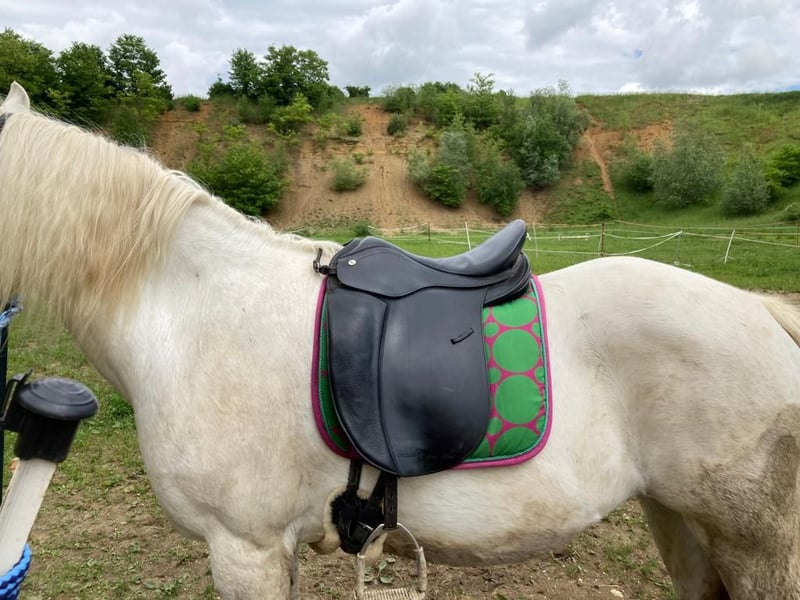 Verlass-Schimmelpony (135 cm) – Unerschrocken, kerngesund & Offenstall-erprobt Beschreibung: Schweren Herzens suche ich aus gesundheitlichen Gründen (2. Bandscheibenvorfall) ein neues, liebevolles Zuhause für mein wunderbares Schimmelpony. Sie ist der perfekte Partner für Familien, die Wert auf Sicherheit und ein ehrliches Wesen legen. Eckdaten: Größe & Alter: ca. 135 cm, 16 Jahre Charakter: Absolut brav, kinderlieb, motiviert und eine echte „Lebensversicherung“. Gesundheit: Nie krank gewesen, robust und läuft problemlos barhuf. Haltung & Sozialverhalten: Das Pony ist sehr herdenverträglich und kennt die Haltung im Offenstall in einer gemischten Herde. Es ist unkompliziert im Umgang und bestens sozialisiert. Kennt aber auch die Box. Ausbildung & Einsatz: Früher bis zur Klasse A ausgebildet, heute ein souveräner Lehrmeister auf E-Niveau. Das Pony ist extrem trittsicher und unerschrocken im Gelände. Ob Platzarbeit, kleine Sprünge oder entspannte Ausritte – es ist stets regulierbar und möchte gefallen. Exklusives Zubehör Zum Wohlbefinden des Ponys gehören zwei hochwertige Sättel von einem Top-Sattler, die im Februar 26 für sie neu angepasst und kontrolliert wurden. Ein speziell angepasster Sattel für Kinder. 16" Ein angepasster Sattel für Erwachsene 17.5 " Fazit: Ein kerngesunder, motivierter Allrounder im besten Alter. Aufgrund meiner Situation gilt Platz vor Preis Kein Notverkauf