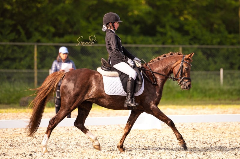 Ella (Elegance) is een temperamentvolle, lieve 8 jarige C-Welsh pony. Dressuurmatig rijdt ze in M1 met 16 winstpunten, dus klaar voor M2! Ze houdt ook van springen en heeft in 2023 deelgenomen aan wedstrijden 60 en 70 cm hoog. Omdat beiden onderdelen tegelijk uitvoeren wat te veel werd voor haar heeft haar ruiter zich volledig geconcentreerd op dressuur. Ella is verkeersmak, braaf bij hoefsmid, tandarts en is jaarlijks ingeent. Ze is geen beginnerspony en vraagt om een ruiter met ervaring en pit.