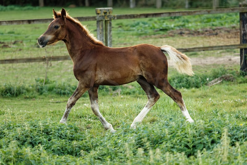 Poulain Welsh Cob remarquablement beau et typé avec de très bonnes allures. Avec un élevage approprié, il sera certainement un candidat à l'approbation ou un partenaire pour de nombreux sports équestres.