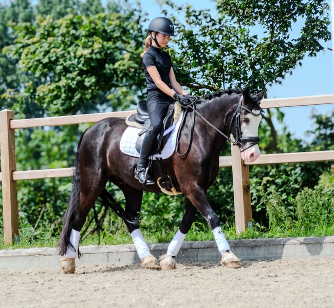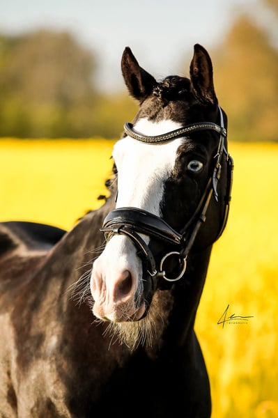 We are reluctantly offering our Captain Keks into loving hands. He is a very special pony – stunningly beautiful, expressive, and with a heart of gold. With his elegant appearance, blue eye, and friendly nature, he attracts attention everywhere – whether in the stable or on the competition arena. • Name: Captain Keks • Breed: Welsh Cob (Section D) • Gender: Gelding • Born: 2014 • Height: approx. 14.2 hh • Training: Dressage up to Class A** • Achievements: Placed in A*-level dressage, very successful in WBO competitions • Health: Always healthy, comprehensive pre-purchase exam from 2023 available • Very affectionate, friendly, and easy-going in handling • Loading and farrier-friendly • Well-behaved, honest, eager to work – always strives to do his best • Expressive with a solid basic training • Ideal for ambitious leisure riders or experienced children Captain Keks is not suitable for absolute beginners. He needs a consistent, clear rider who can handle him with love but also with confidence. At competitions, he can sometimes be a bit impressed, especially in noisy environments. At home, he remains calm, well-behaved, and reliable. As our daughter is moving into show jumping and transitioning to a larger horse, we are now seeking a suitable, long-term home for Keks. We will only rehome Captain Keks to a 5-star home – preferably to an experienced horse-owning family or a mother-daughter team who recognize his strengths, can handle his sensitive nature, and continue to support his development. If genuinely interested, we are happy to send a current video.