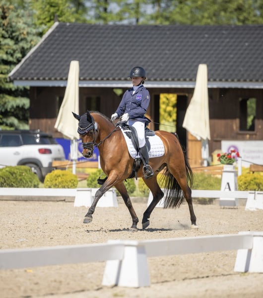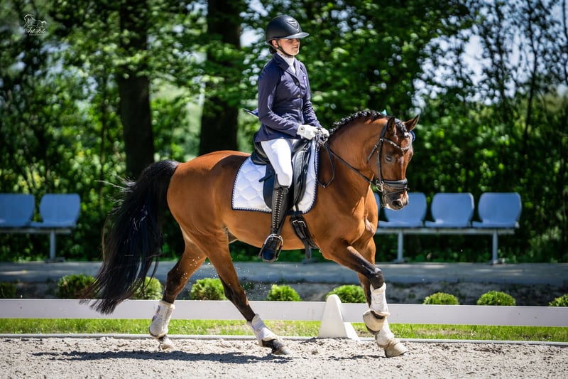 Lucas RJT is a 15-year-old Welsh Pony gelding standing at 146 cm (D group), with extensive experience in dressage training. Over recent seasons, he has successfully competed in classes P and N (M-level), achieving excellent results – regularly scoring above 70% in class P and around 65% in class N. During training, he also performs elements of C-level dressage, making him an ideal partner for further development in this discipline. Lucas is sensitive to unfamiliar people but easy to handle in daily grooming, mounting, and farrier visits. He is under regular veterinary, farrier, and physiotherapy care. Additionally, he has been trained in ground work following natural horsemanship principles. The pony is very well-behaved both in the field and around other horses. Key achievements: - 🥉 3rd place in the Wielkopolska Cup Final in the N - Open category 2025 – 64.617% - 🥇 1st place in the Western Poland Little St. George Dressage Series 2024 - 🥇 1st place in the Wielkopolska Championships in the Junior category on a pony 2024 – 70.000% - 🥇 1st place in the Wielkopolska Championships in the Junior category on a pony 2023 – 68.636% - 🥇 1st place in the Wielkopolska Cup Final in the Junior category on a pony 2023 – 67.812% - 🥈 2nd place in the Wielkopolska Cup Final in the Junior category on a pony 2022 - 🥈 2nd place in the Wielkopolska Championships in the Junior category on a pony 2022 - 🥉 3rd place in the Wielkopolska Championships in the Junior category on a pony 2021 - 🥈 2nd place in the Wielkopolska Cup Final in the Junior category on a pony 2021 - 🥇 1st place in the Wielkopolska Cup Final in the Junior category on a pony 2020 - 🥇 1st place in the Wielkopolska Championships in the Junior category on a pony 2020 Additional sports experience: Lucas has also competed in the Indoor Polish Dressage Cup, the Polish Dressage Championships, and has participated multiple times in the National Youth Olympiad (OOM). The pony has previously jumped obstacles up to 90 cm. A swap for a larger dressage-oriented horse is also possible. Contact phone: +48 503 038 390