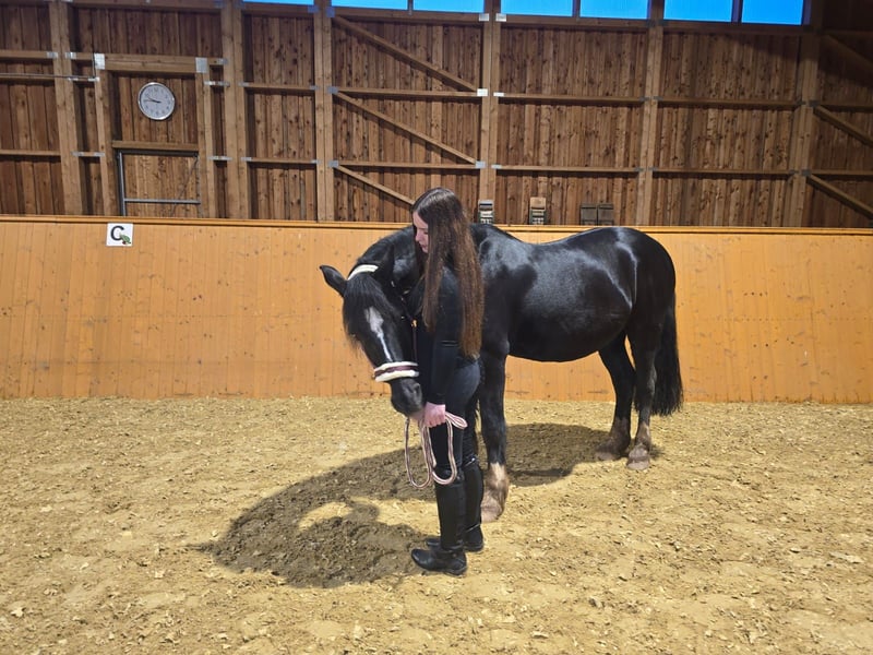Verkaufe Welsh-D Wallach Zum Verkauf steht ein wunderschöner Rapp-Wallach, mit einer super Abstammung, geboren im Jahr 2009. Mit einem Stockmaß von 155 cm ist er der perfekte Begleiter für ambitionierte Reiter, die ein vielseitiges Pferd suchen. Er ist auch schon das ein oder andere Turnier gelaufen. Allerdings wird er nicht als Turnierpferd verkauft. Der Welsh-D überzeugt durch seine freundliche Art, seine Lernbereitschaft und sein angenehmes Temperament. Ponypower kann in gewissen Situationen leicht ängstlich reagieren, ist aber ganz schnell wieder da und wird nie kopflos. Im Umgang ist er ein absoluter Schatz. Unarten kennt er überhaupt nicht. Kein treten, kein bocken kein beißen. Allerdings ist er definitiv kein Anfänger bzw. Kinderpony. Er braucht einen sicheren klaren Reiter der ruhig und fair mit ihm umgeht. Gerne macht er auch jeden Unsinn mit und ist sehr verschmust. Auch an Bodenarbeit hat er sehr viel Spaß. Trotz seines Alters läuft er wie ein Jungpferd und hat sehr viel Kondition. Zur Zeit ist er bei uns noch im Muskel und Balancetraining deshalb ist ein Probereiten bedingt durchführbar. Der Wallach ist gesund, regelmäßig geimpft und frisch entwurmt. Gerne kann auf Wunsch eine AKU auf Kosten des Käufers stattfinden. Mehrfacher Besuch zum richtigen Kennenlernen ist selbstverständlich möglich. Ein so gut wie neuer, passender Sattel von der Firma Sommer kann gegen Aufpreis mit erworben werden. Bei Interesse und für weitere Informationen stehe ich gerne zur Verfügung.