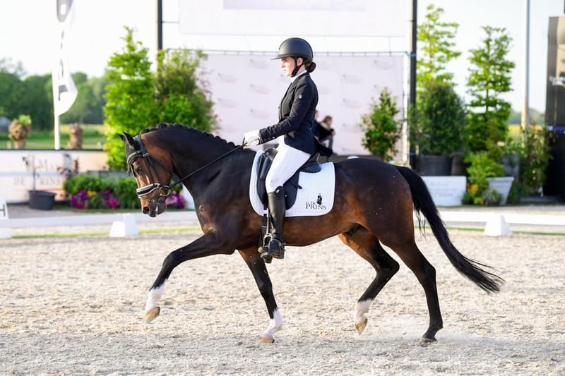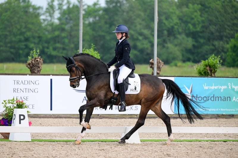 Due to the transition of the rider from pony to horse, this pony is for sale. Vlagberg's Pride is a 9-year-old dressage pony that achieves good scores in Z2 level. He can also jump nicely. He is well-behaved with the farrier, dentist, during transport, and on trail rides. He is also always kept up to date with vaccinations, worming, and dental care. For more information, please call or message +31614312172.