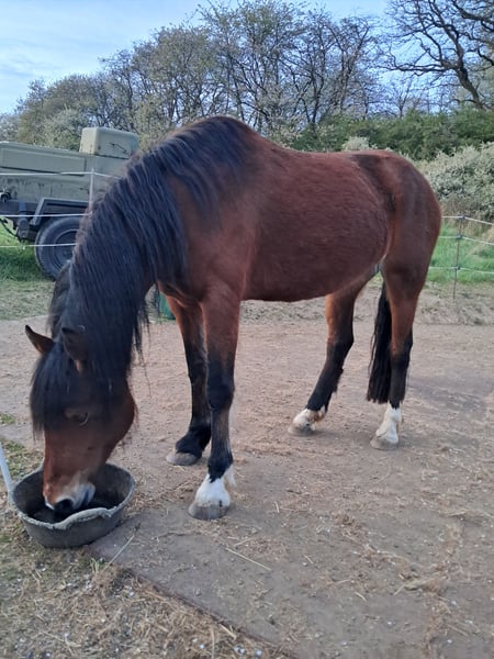 Zum Verkauf steht meine bald zehnjährige Welsh Cob Stute. Sie wurde angeritten und mit viel Geduld und Feingefühl akademisch vom Boden gearbeitet. Die Freiarbeit macht ihr am meisten Spaß. Leider konnte sie im letzten Jahr nicht weiter gefördert werden, da ich verletzungsbedingt längere Zeit ausgefallen bin un leider noch weiter ausfallen werde – deshalb steht sie aktuell nicht im Training. Im Umgang zeigt sie sich neugierig und lernfreudig. Sie braucht aber eine klare und ruhige Bezugsperson, die ihr Sicherheit gibt. Sie ist von Natur aus eher unsicher und wird in neuen oder aufregenden Situationen leicht hektisch. Überfordert man sie kann dies in Hysterie umschlagen. Sie ist verladefromm, fährt entspannt Hänger und ist es gewohnt alleine (z.B. im Gelände, Reithalle) unterwegs zu sein und alleine gearbeitet zu werden. Sie lebt bei mir seitdem sie zweieinhalb Jahre ist in einem Offenstall in einer gemischten Herde mit Isländern und einem weiteren Pony. Dort zeigt sie sich sozial, manchmal etwas zickig, aber im großen und ganzen unkompliziert, sowohl mit Stuten als auch mit Wallachen. Hunde kennt sie auch draußen, solange diese sie in Ruhe lassen, ist sie freundlich. Menschen gegenüber ist sie sehr zugewandt und aufmerksam, such die Nähe und möchte gefallen. Sie ist kein Kinderpferd. Sie gehört in erfahrene, ruhige und konsequente Hände, die ihr Sicherheit geben und ihr Potenzial weiter fördern. Platz vor Preis - ein passendes Zuhause ist mir wichtiger als der Preis. Sie ist kein Notverkauf.