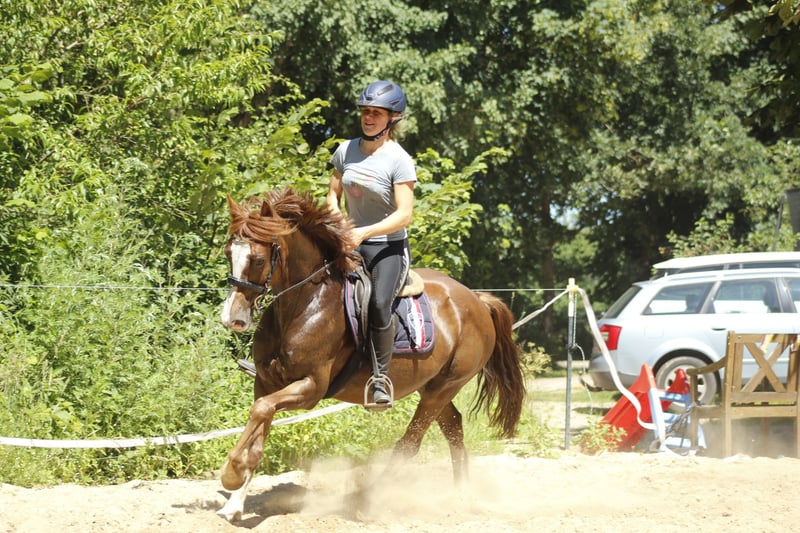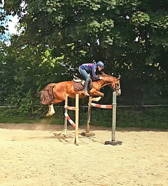 Princess Charlotte, also known as Greta, is a beautiful dark chestnut mare who has already competed in the German Championships in Eventing (CICOP-L**) and has been nominated by the national trainer for the Federal Young Talent Championship in Show Jumping over 1.30m. We bought Greta back then as a final size pony for my daughter and then leased her during the Corona period. She returned to us 9 months ago, and now we unfortunately have to part with her due to time constraints. She is always supportive of the rider and wants to please. She is a perfect teacher for Show Jumping and Cross Country. Extremely well-behaved with small children, scoring 8s even with them in the E style.