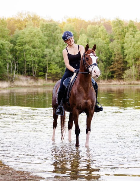 C'est avec la douleur au cœur que nous cherchons un foyer 5***** pour Amaretto en raison de sa transition vers les chevaux. Amaretto ( Blokland's Hoeve's Activia ) est une talentueuse jument alezane de 12 ans qui est maintenant prête pour le Z2 et le FEI. Elle est un très bon poney d'apprentissage de A à Z. Amaretto a beaucoup de potentiel en saut d'obstacles et a été autorisée à montrer son talent à 70-80cm. Cependant, notre objectif était plutôt le dressage et nous ne l'avons pas poussée plus loin en saut d'obstacles. Avec ses excellents mouvements et son caractère volontaire, Amaretto est un poney prometteur pour un cavalier avec de grandes ambitions. Elle se comporte bien chez le maréchal-ferrant, chez le dentiste et dans la remorque et n'a aucun problème à être rasée. Si vous souhaitez voir plus de photos ou une vidéo d'elle, veuillez nous envoyer un email.