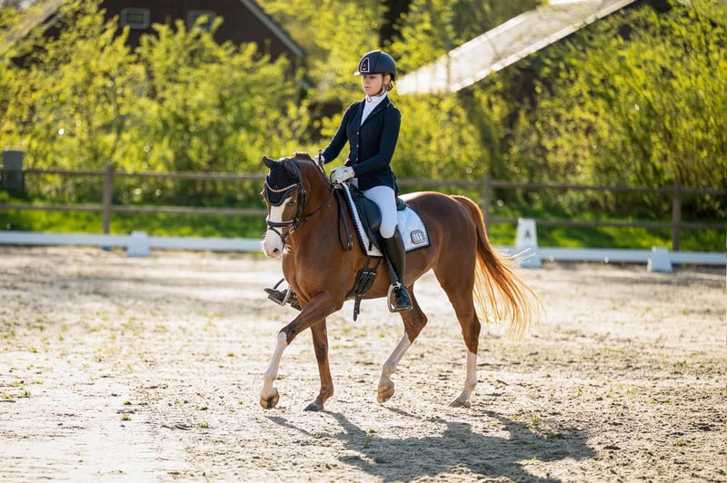 Mit Schmerz im Herzen suchen wir ein 5***** Zuhause für Amaretto wegen Umstellung auf Pferde. Amaretto ( Blokland's Hoeve's Activia ) ist eine talentierte 12-jährige Fuchsstute und ist jetzt Z2 und FEI ready. Sie ist ein sehr gutes Lernpony von A bis Z. Amaretto hat viel Potenzial im Springen und durfte ihr Talent schon auf 70-80cm zeigen. Unser Ziel war jedoch eher die Dressur, daher haben wir sie nicht weiter im Springen gefördert. Mit ihren hervorragenden Bewegungen und ihrem willigen Charakter ist Amaretto ein vielversprechendes Pony für einen Reiter mit großen Ambitionen. Sie ist brav beim Hufschmied/Zahnarzt und auf dem Hänger und lässt sich problemlos rasieren. Wenn Sie mehr Bilder oder ein Video von ihr sehen möchten, schicken Sie uns bitte eine E-Mail.