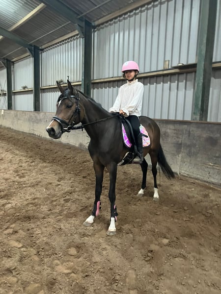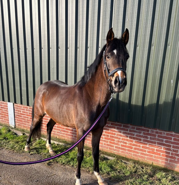 Leuke toekomstige kinderpony. Wordt volgende maand 4. Is goed zadelmak en wordt nu gereden door een 9 jarig meisje. Loopt soms ook een groeples mee en doet dat bijzonder goed. Wordt verkocht wegens ruimte gebrek.