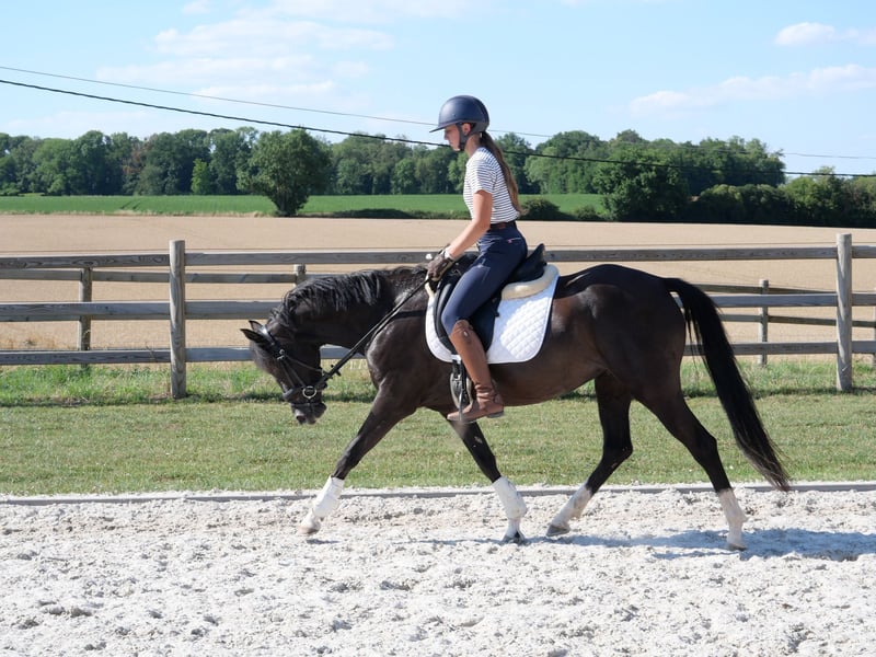 Superb Welsh Pony NWPCS – 4 years old – Promising Mare For sale, beautiful mare 4-year-old Welsh Pony NWPCS, black coat with four white socks, standing at 1.44m at the withers. Level: victorious in 4-year-old pony competitions, she shows a bright sporting future. Character: kind and respectful, with spirit. Easy to handle, transport, and cooperative in all circumstances (farrier, groundwork, etc.). Also pleasant for trail riding. Sire: Nieuwmoed’s Mr. Darcy Achieved a score of 57/60 in the "verrichtingsonderzoek" (performance test), notably receiving a 9 for box behavior and an 8.5 for walk. The jury highlighted her very nice conformation, natural carriage, technical gaits, and calm, reliable demeanor. Maternal grandfather: Power and Paint Was a very successful international dressage pony, known for his grace, flexibility, and competition results. His influence can still be seen in many quality sport lines today. Complete radiographic report from 2023 available, with no remarks. Vaccinations and deworming up to date. This young pony combines sporting qualities, beauty, and ease of handling in daily life. An excellent opportunity for a rider looking for a promising and healthy pony.