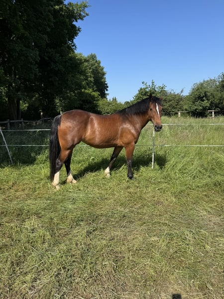 Zum Verkauf steht meine 2018 geborene, 1,56m große, Welsh D Stute Frieda (lt. pass Cornwall Here I Am) Frieda wurde Anfang 2025 schonend angeritten und befindet sich aktuell noch am Anfang ihrer Ausbildung. Sie kennt das Reiten auf dem Platz, in der Halle und war auch schon in der Gruppe im Gelände, was sie sehr brav gemeistert hat. Nun leider zu ihrer aktuellen Problematik, da ich einen Beinbruch habe ist sie leider aus dem Training. Eine Pflegebeteiligung hat sich ihrer angenommen und leider durch Fehlverhalten einige unarten antrainiert. An der Longe ist sie sehr dominant und versucht die Führung zu übernehmen oder sich loszureissen. Sie zeigt aktuell ein dominantes Verhalten. Sie ist kein Anfängerpferd. Frieda ist eine sensible, charakterstarke Stute, die eine klare, ruhige Führung und Sicherheit durch ihren Menschen braucht. Gibt man ihr diese Sicherheit und baut Vertrauen auf, entwickelt sie sich zu einer loyalen Partnerin, die mit ihrem Menschen „durch dick und dünn“ geht. Sie ist regelmäßig beim Hufschmied, im August wurden ihre Zähne gemacht und auch Physio und Ostheopathie war regelmäßig bei ihr. Die Stute hat einen getreideunverträglichkeit und reagiert bei Fütterung mit Bauchschmerzen. Hatten wir hier mit getreidefreien Müsli super im Griff. Letztes Jahr zeigte sie leichte Anzeichen von Sommererkzem, der Tierarzt konnte dies nicht bestätigen aber auch nicht 100% auschließen. Wir haben sie mit Ekzemerdecke auf der Weide gehabt und dann keine Probleme mehr. Ihre Decken gebe ich gerne mit. Aktuell ist sie durch meine Verletzung seit Anfang des Jahres nicht im Training. Mir ist ein passendes Zuhause extrem wichtig, daher Platz vor Preis. Kein Verkauf an Händler, Reitbetriebe oder Reitschulen. Ich suche ausschließlich erfahrene Pferdemenschen, die sich bewusst auf ein junges, problematisches Pferd in Ausbildung einlassen möchten und Frieda die Zeit, Geduld und Förderung geben, die sie verdient. Bei ernsthaftem Interesse freue ich mich über eine Nachricht