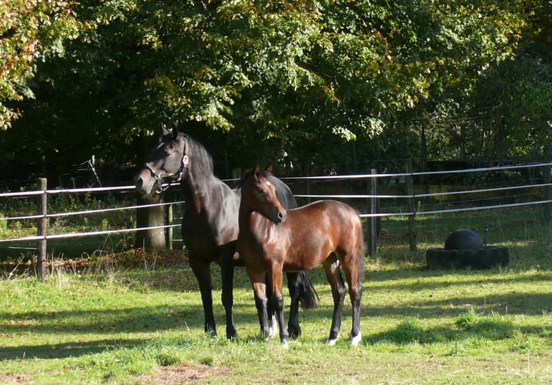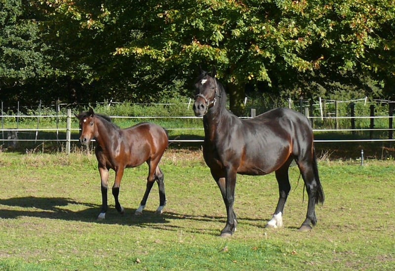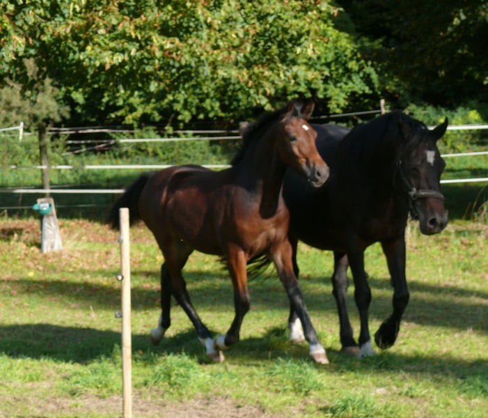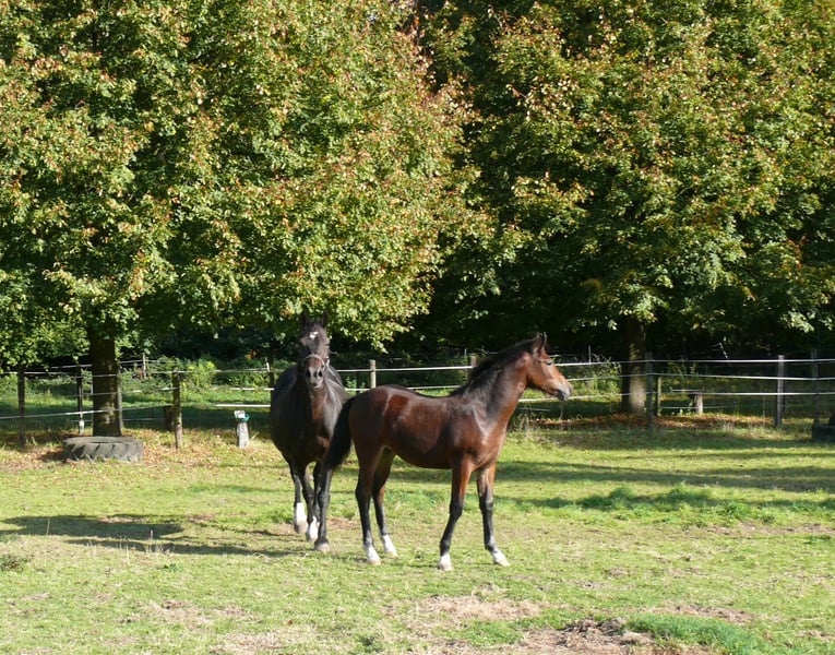 Qualitätvolles Stutfohlen von Elite LH Hengst Dieses Stutfohlen ist mit ihrem Charme, Ausdruck und Qualität ein Blickfang. Aufgrund der Abstammung sowohl für Sport und Freizeit, als auch für die Zucht geeignet. Vater ist der „Elite LH Halifax“, Welsh-B, braun, Stockmaß 142cm. Halifay ist FN-Bundessiegerhengst Springen; Vater von mehr als 30 gekörten Hengsten, davon 9 Körungs- oder Reservesieger, mindestens 26 Staatsprämienstuten, 3 Bundeschampions und 2 Vize-Bundeschampions. Die Mutter „V. Magic Lady“, Welsh-Cob, D-braun, Stockmaß 148cm, wurde in jungen Jahren sehr erfolgreich auf Zuchtschauen in Deutschland Holland und Belgien vorgestellt: u.a. Gesamt-Siegerfohlen, Klassensieger und Champion Welsh-Cob, entstammt einer sehr erfolgreichen Familie. Ihr Großvater „Trevallion Picasso“ war mehrere Jahre hintereinander erfolgreichster Vererber bei den gerittenen Welsh-Cob in Großbritannien. Des weiteren finden wir auf der Mutterseite 2mal „Derwen Dessert Express“. Dieser Stempel-Hengst war und ist ganz besonders erfolgreich in der Welsh-Cob-Zucht, aber auch unter dem Sattel sind seine Nachkommen hoch erfolgreich und gefragt. Das Stutfohlen, geboren am 07. Mai 2025, braun, kleiner Stern und 4mal weiss an den Beinen. Erwachsen erwarte ich ein Stockmaß von ca. 148cm, ähnlich der Mutter. Gerne beantworte ich ihre Fragen; bitte Mobil 0178 45 07 123 anrufen und evtl. auf Band sprechen; Danke !