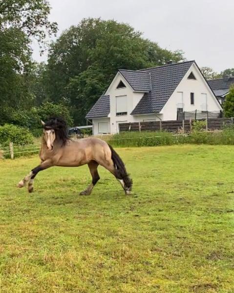 Wir verkaufen unseren selbstbezogenen Welsh-PB Hengst „Malfoy“ (2.10.25) - der nicht nur Harry Potter Fan‘s um den Finger wickelt. Denn bis auf die Haarfarbe/Fellfarbe haben die beiden wenig gemeinsam :-) Malfoy liebt es gekuschelt und geputzt zu werden. Gibt die Hufe, lässt sich brav Halftern und geht frei mit seiner Mutter ins Gelände spazieren. Selbst die erste Wurmkur hat er brav genommen. Er wächst bei uns im Offenstall auf. Aktuell besteht die Herde aus 9 Ponyˋs /Pferden gemischten Alters. Mit einem Endmaß von +/- 1,50 m ist er perfekt für Freizeitaktivitäten geeignet und wird die ganze Familie durch seine vielseitigen Einsatzmöglichkeiten begeistern. Auch im Dressursport oder vor der Kutsche hat er Zukunft. Sein Vater hat ihm einen sehr guten Schritt mitgegeben. Vater ist der Welsh D Hengst: Zest MaXterpiece (siehe letzte Fotos) Mutter ist unsere Edelbluthaflingerstute Waleska. Sie stammt vom Leistungshengst Auryno ( Edelbluthaflinger 1,52 m. ox Anteil: 3,91% HLP über Sporterfolge) ab. Malfoy hat volle Papiere von der Welsh Pony & Cob Vereniging aus den Niederlanden. Er darf ab Mai/Juni in sein neues Zuhause ziehen. Könnte aber auch zur Aufzucht bei uns bleiben.
