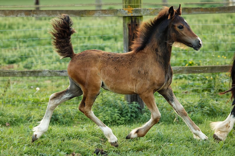 Well-developed, framy Welsh Partbred stallion foal with plenty of bone and a correct foundation that can move excellently. With his four white socks he is a real charmer.