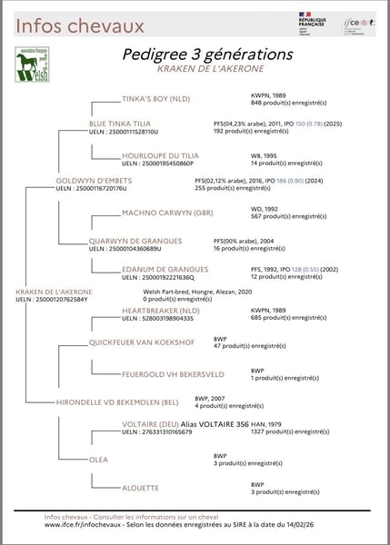 🔷🔷🔷KRAKEN DE L’AKERONE🔷🔷🔷 6 ans le 23/05/2026 Hongre, 166,cm, alezan, WPB 🧬 Origines : Père: GOLDWYN D’EMBETS, PFS Mère: HIRONDELLE VAN DE BEKEMOLEN, BWP grands parents maternels : VOLTAIRE et HEARTHBREAKER Débourrage à 4,5 ans, pour respecter sa croissance au vu du modèle Début du vrai travail mi 2025 Kraken possède un vrai équilibre dans toutes les allures. Ses premiers essais de changements de pieds ont été réalisés avec facilité (cf vidéo) Nous avons attendu sa croissance avant de commencer le travail monté. Il débute le travail sur les barres et montre des facilités au vu de sa force. À pied, il est respectueux et aime le contact avec l’humain, ce qui fait de lui un cheval très attachant. 🦷 Dents : ok ✅ 💉 Vaccins TG-Rh : ok ✅ 👨⚕️ Ostéopathe : ok ✅ 🚛 Transport : ok ✅ Sortie en extérieur seul ou accompagné : ok ✅ Disponible et possibilité de l’essayer à Touvois (Sud Loire-Atlantique 44) 💶 18 000€ Évolutif avec le travail