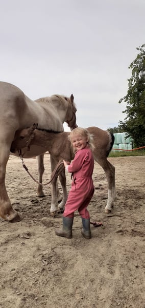 *** Heavenlysmile's Yen-Ai *** Notre Yen-ai est une jument merveilleusement belle. Elle aura un an à la fin juillet et aime toujours téter sa mère ;-) Elle mesurera entre 1,60 et 1,63 m, tout comme son frère et sa sœur pleine (voir les dernières photos). Yen-Ai est un poulain spécial pour nous, issu de notre propre élevage depuis trois générations ! Notre passion est entièrement investie en elle et cela se reflète dans tout <3 Yen-Ai est élevée pour le sport et les loisirs. C'est un type de cheval très puissant avec beaucoup d'énergie. Une véritable beauté, un joli coup d'œil ! Elle porte le gène en elle. Cela signifie qu'elle aura en hiver un beau pelage plein de mini-boucles et une belle crinière et une queue pleine de boucles. Elle est également hypoallergénique. Nous élevons des Curly Horses depuis 11 ans. (17 ans avec des Welsh Cobs :) ) Notre objectif est d'élever un cheval très amical et polyvalent, hypoallergénique. Cela convient aux jeunes et aux moins jeunes, pour les loisirs et le sport de haut niveau ! Nous offrons à tous nos animaux les meilleurs soins possibles, avec les vaccinations appropriées et des soins des sabots en temps voulu. Nos prix indiqués sont hors TVA, inspections et frais de transport. Si vous souhaitez plus d'informations ou avez des questions, n'hésitez pas à m'envoyer un message !