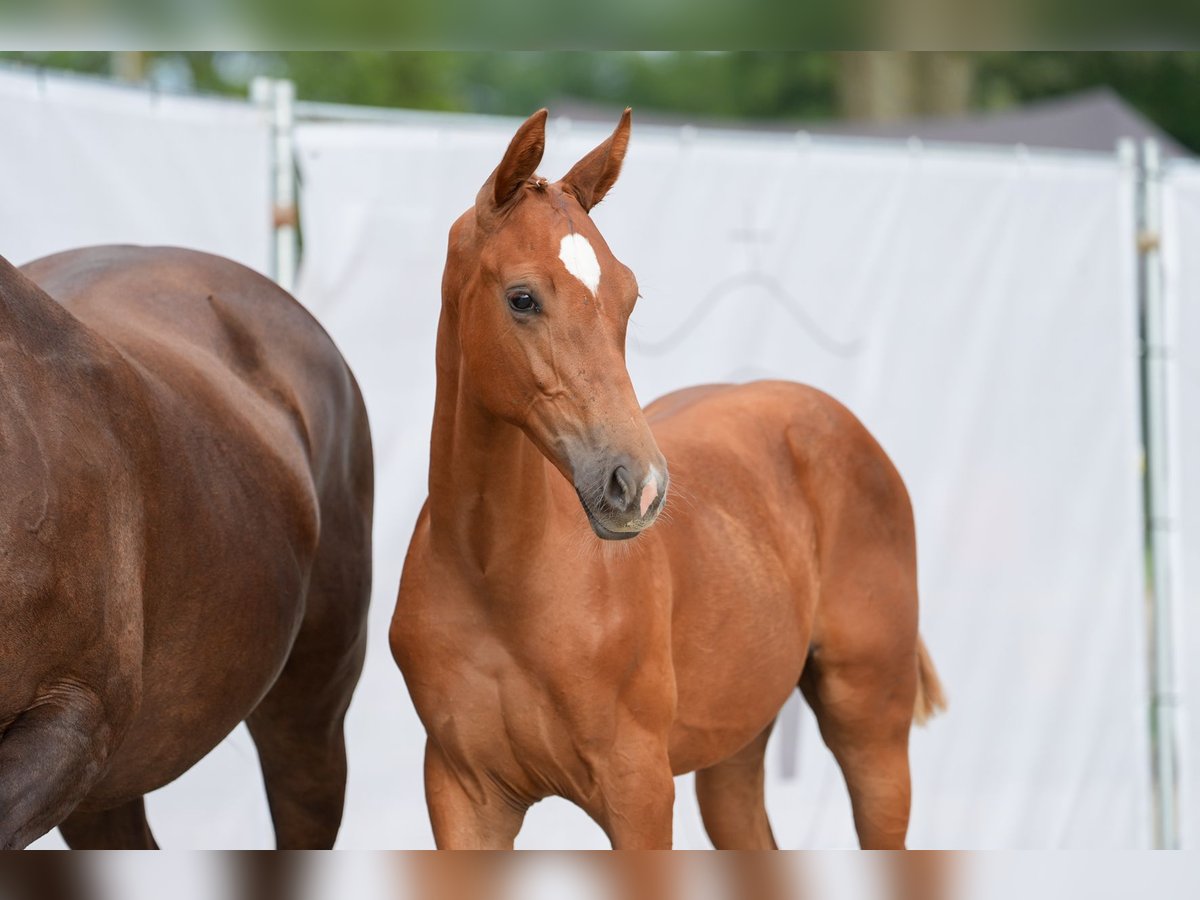 The foal is by the main premium stallion Federer (Livaldon, Canstakko) from Sosath in Lemwerder, who had an outstanding first foal crop. The dam is a daughter of Fürst Piccolo, who stands for dressage horses and breeds at the NRW State Stud. She is also a daughter of Weinberg, who has produced both dressage and show jumping horses and stands for toughness. The mare is 20 years old and has a TÜV certificate with no findings. She also passes this on to her children. The foal is long-legged, strong-moving and has a good rhythm. It is very typey and clear-headed. He is characterized by his people orientation.