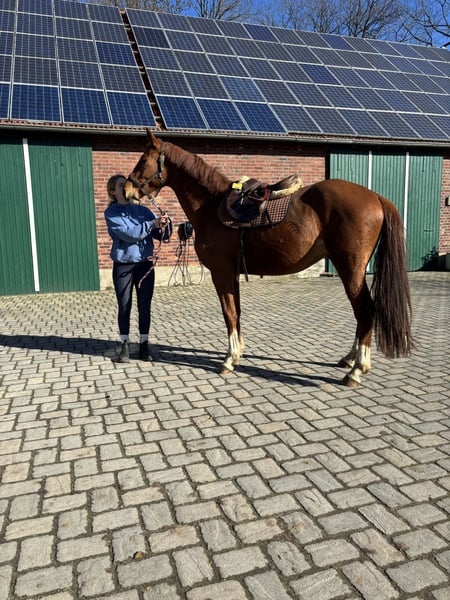 ZumVerkauf steht Donner Karlsson, ein selbstgezogener Hengst abstammend von Diro x El Salvador. Er ist ein großer und sportlicher leichter Typ, der immer gefallen möchte. Aufgrund meines andauerndes Studiums habe ich keine Zeit. Karlchen ist lieb und sehr vermust und läuft gemeinsam mit drei Wallachen in der Herde. Dabei ist er eher rangniedrig. Seinen Stockmaß schätze ich ca auf 172/175 cm. Die Mutter war 180cm, daher denke ich dass er noch weiter wachsen wird. Er lässt sich super verladen, kennt den Hufschmied, kennt Freispringen und ich habe mich bereits mehrmals drüber gelehnt.