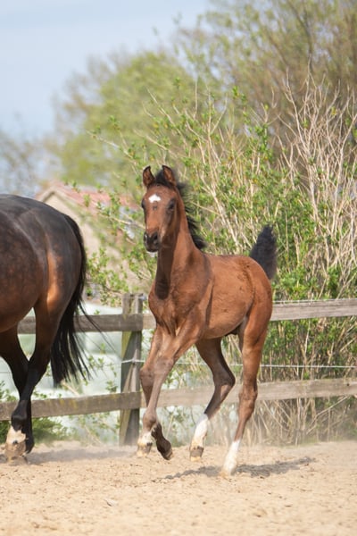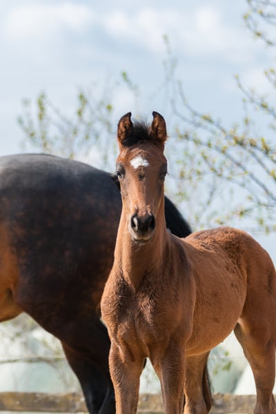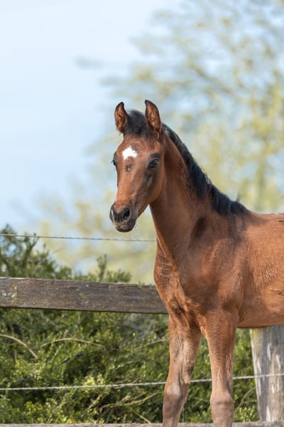 This extremely correct and typey, alert colt inspires with its quality and elegance of movement in all basic gaits. The best dressage blood in the pedigree - via the top sire ZOOM from Warendorf, the dam's sire SON OF COLOGNE by Sir Donnerhall and the stamp stallion Florestan in the further pedigree - suggests a high level of rideability, willingness to perform and suitability for dressage. The stallion grows up in a herd with other mares and foals, daily handling and regular hoof care (without abnormalities). The foal is in Melle.