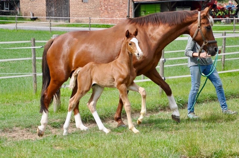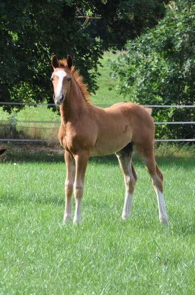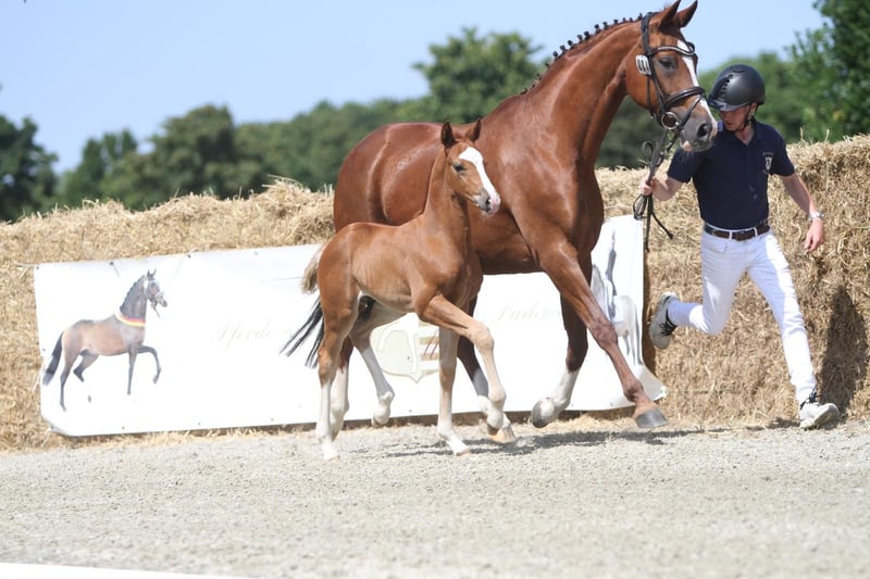 Hier ist noch ein tolles Hengstfohlen von Venturo- dem Rittigkeitsvererber- zu haben. Bei der Qualifikation zum Fohlenchampionat erhielt er in allen Bereichen von den drei Richtern einstimmig 9er Noten, für die Bewegung zweimal die 9,5.Damit ist alles über Typ, Körperbau und Bewegung gesagt. Ganz bewusst suche ich für ihn auf privatem Weg ein neues, pferdegerechtes, förderndes Zuhause und habe nicht den Weg über die Auktion gewählt. Ich möchte entscheiden können in welche Hände er kommt. Hier genießt er eine sehr gute Aufzucht in kleiner Herde mit bestem Futter, viel Bewegung und einer guten Erziehung. Seine Mutter ist Stprst mit sehr guter Leistungsprüfung (8,3), sie war im Endring beim Deutschen Stutenchampionat und stammt ab von Jazz Rubin aus einer Brentano II Mutter. Hannoverscher Stutenstamm der Sigrid. Ihre Fohlen gingen z.T. sehr hochpreisig über die Auktion- auch ins Ausland. Sie hat dressurerfolgreiche Nachkommen bis S** und eine Tochter wird jetzt im Parasport eingesetzt. Sie hatte dreijährig sehr gute Röntgenbilder, ist chipfrei und hat ein solides Fundament. Gerne kann das Fohlen hier zuhause besichtigt werden. Preis der Qualität entsprechend.