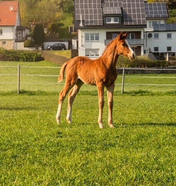 Premium Colt by Zinedine – from a mare with two licensed sons Born: February 14, 2026 Colt Sire: Zinedine Dam: Country Lady (Conceicao x Pilot). A performance-oriented broodmare with two licensed sons already produced. Color: Chestnut with a distinctive blaze Location: Borchen (North Rhine-Westphalia), Postal Code 33178 Price: €10,000 including VAT This exceptionally typey colt impresses with its modern, athletic conformation and outstanding genetic background. Zinedine stands for talent, rideability, and quality. The dam line is particularly valuable: two licensed sons from the same mare attest to strong hereditary traits and breeding potential. Character & Presence - Very people-oriented and friendly - Curious, clear-minded, and uncomplicated - Already shows beautiful movement and good balance Viewing Viewings are available by appointment at any time. Transport can be arranged. https://www.instagram.com/pferdezucht_weritz?igsh=cHJ6anc3NHQ2aDlx&utm_source=ig_contact_invite https://www.instagram.com/reel/DVVQWfEiO17/?igsh=a2c1OHI4ZGNncmRt