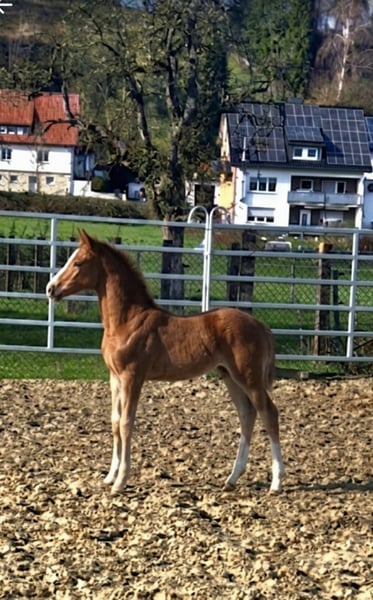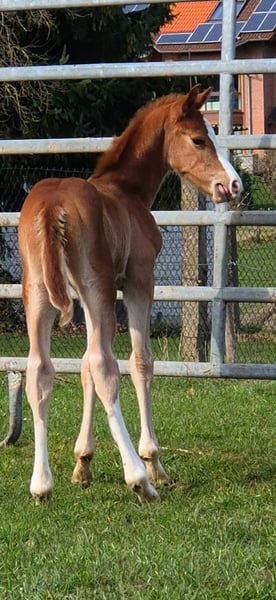 Edel gezogenes Hengstfohlen von Zinedine – aus Mutter mit zwei gekörten Söhnen Geboren: 14. Februar 2026 Hengstfohlen Vater: Zinedine Mutter Country Lady (Conceicao x Pilot).Leistungsstarke Zuchtstute, bereits zwei gekörte Hengste gestellt Farbe: Fuchs mit markanter Blesse Standort: Borchen (NRW) PLZ 33178 Preis: 10.000 inklusive MwSt Dieses außergewöhnlich typvolle Hengstfohlen überzeugt durch seine moderne, sportliche Linie und seine hervorragende genetische Absicherung. Der Vater Zinedine steht für Vermögen, Rittigkeit und Qualität. Die Mutterlinie ist besonders wertvoll: Zwei gekörte Hengste aus derselben Stute sprechen für Vererbungssicherheit und Zuchtpotenzial. Charakter & Auftreten - sehr menschenbezogen und freundlich - neugierig, klar im Kopf und unkompliziert - zeigt bereits schöne Bewegungen und gute Balance Besichtigung Besichtigung nach Absprache jederzeit möglich. Transport kann organisiert werden. https://www.instagram.com/pferdezucht_weritz?igsh=cHJ6anc3NHQ2aDlx&utm_source=ig_contact_invite https://www.instagram.com/reel/DVVQWfEiO17/?igsh=a2c1OHI4ZGNncmRt