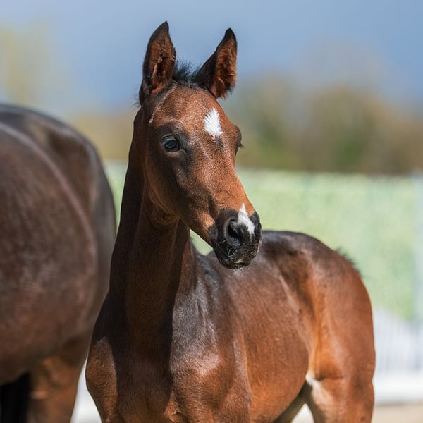 Der aktuell in Dressurprüfungen der Klasse M erfolgreiche Entertainer Number One mit einem schmucken Sohn