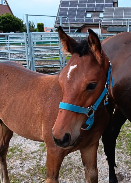 Wir verkaufen unser am 01.05 geborenen schickes Hengstfohlen. Er könnte ab Oktober ausziehen.