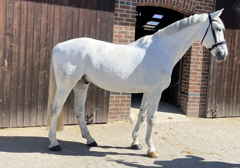 Zum Verkauf steht hier ein großrahmiger, bildschöner Schimmelwallach. ist 10 Jahre alt, super rittig und bringt eine tolle Einstellung zum Sprung mit. Mit Menschen und anderen Pferden ist er freundlich und trotz seiner Größe auch von jungen Reitern immer händelbar. Er kann Turniererfahrung in der Klasse A* und A** vorweisen und hat definitiv das Potential für mehr (siehe Video)! Bei Interesse bitte unter dieser Nummer melden: 017670569890