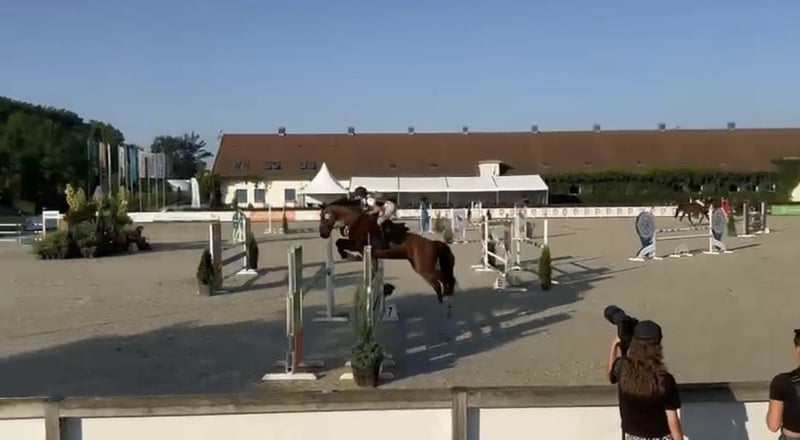 Trotteur pour junior destiné à l'initiation au saut d'obstacles