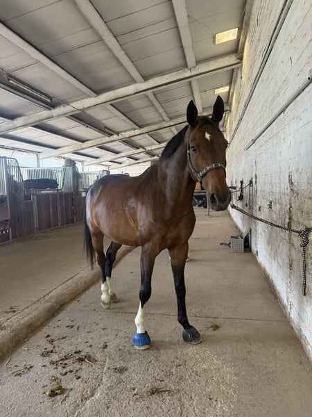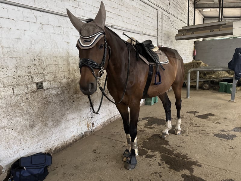 Hallo, ich suche für meinen 16jährigen sehr braven Westfalenwallach schweren Herzens ein neues Zuhause aus beruflichen und finanziellen Gründen. Cooper hat letztes Jahr 2 x das Kliniklos gezogen. Einmal hatte er eine Wunde am Carpalgelenk, die gespült werden musste und beim zweiten Aufenthalt hat er sich den Hüfthöcker angeknackst. Das alles ist aber schon wieder eine Weile her, seine Prognose ist top. Er war in der Szinthigrafie und hat außer einen winzig anfänglichen Spatbefund einseitig links, keine weiteren Befunde diagnostiziert bekommen. Der Hüfthöcker wurde „athroskopisch“ versiegelt und geschliffen. Außer, dass noch nicht 100% wieder Fell über das Scherfenster gewachsen ist, hat er keinerlei Einschränkungen und läuft super. Wir trainieren ihn gerade wieder an- auch unterm Sattel. Er ist super lieb zu Kids und Hunden. Er ist brav unterm Sattel auch nach tagelangem oder Wochenlangen Pausen kann man sich nur mit Halfter und Strick auf ihn draufsetzen ohne Stress. Er buckelt oder steigt nicht. Er ist im Turniersport bis Springen M platziert und in der Dressur bis L. Aufgrund der Hüfte soll er NICHT mehr springen oder Pirouetten drehen. Als Freizeitpferd ist er aber uneingeschränkt reitbar, wenn man ihn nicht 7 Tage die Woche knechtet. Darauf hat er einfach auch keine Lust mehr. Gerne kann hier auch mit dem Oberarzt der Klinik gesprochen werden. Er mag Offenstall nicht, haben wir mal probiert. Er braucht nachts seine Box mit lecker Heu und Stroh sowie Müsli. Ansonsten ist er fit wie ein Turnschuh, eher triebig als temperamentvoll und ein Kuschelbär. 100% Schmiede- und verladefromm. Ausreiten mit 2.Pferd findet er super und ist eine Bank. Alleine muss er erst Vertrauen und die Wege kennen, sonst ist er zappelig und unentspannt. Er ist sozial mit anderen Pferden. Er wird nicht als Lehrmeister, Schulpferd oder an Händler abgegeben. Hochwertiges und neuwertiges Zubehör (zB angepasster Prestige Sattel, Decken von Bucas etc.) können gegen Aufpreis übernommen werden, da ich den Reitsport aufgebe und die Sachen dann eh verkaufen würde. Ich könnte mir ein Mama-Kind Gespann gut vorstellen oder ein Wiedereinsteiger ohne Turnierambitionen… Er möchte eine Bezugsperson, die ihn gesunderhaltend gymnastiziert und als Familienmitglied liebt. Er hat immer gute Laune und ist einfach wunderbar und besonders. Darum ist es echt schwer - aber ich will nur das allerbeste für ihn.