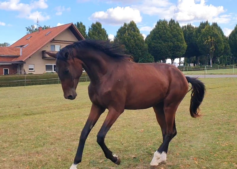 Ein toller Wallach mit viel Qualität, Ausstrahlung und toller Perspektive für die Zukunft. Er ist dem Menschen sehr zugewandt und kennt bereits alles Mögliche wie Hunde, Hühner, Trecker etc. Er steht im Offenstall mit täglichem Weidegang. Videos seines Vollbruders können auf Anfrage verschickt werden.
