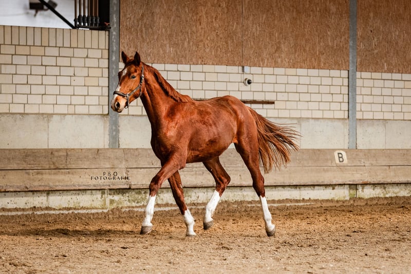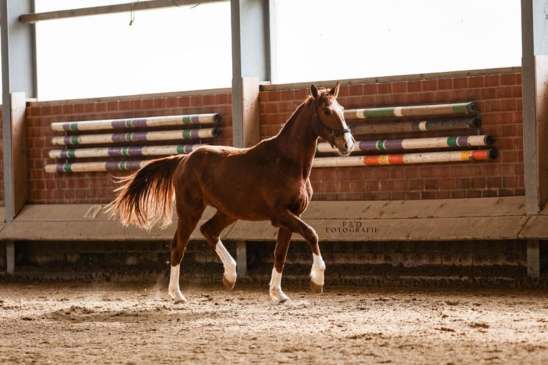 Wszechstronny młody koń o doskonałym rodowodzie i perspektywach Ten dwulatek wyróżnia się wysoką jakością i wszechstronnymi predyspozycjami. To koń, który świetnie sprawdzi się zarówno w ujeżdżeniu, skokach, jak i w konkurencjach wszechstronnych – otwierając wiele możliwości na przyszłość. Ojciec, DSP Quasi Gold MD, był finalistą Mistrzostw Niemiec w konkurencji wszechstronnej dla koni młodych w wieku 5 i 6 lat. Odnosił zwycięstwa we wszystkich trzech dyscyplinach na zawodach i odnosi sukcesy do poziomu S*-Dressur, a także do poziomu S***. Matka jest wywiedziona z koni o silnym ukierunkowaniu na skoki, ale jednocześnie zachwyca doskonałą jakością ruchu. Ta kombinacja została celowo wybrana, aby uzyskać nowoczesnego, wszechstronnie użytecznego konia sportowego. I właśnie to on pokazuje: jest wysoki, ma poprawną, stabilną podstawę, dobrej jakości ruch i szerokie perspektywy sportowe. Ekscytujący młody koń dla jeźdźców, którzy nie chcą się jeszcze na stałe określać, oraz dla tych, którzy poszukują konia z potencjałem rozwojowym.