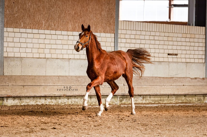 Versatile young prospect with top bloodlines and promising potential. This 2-year-old foal impresses with his quality and versatile aptitude. A horse that offers excellent prospects for dressage, jumping, or eventing – opening many future opportunities. His sire, DSP Quasi Gold MD, was a finalist at the Bundeschampionate for eventing horses at ages five and six. He has won medals in all three disciplines at competitions and is successful up to S*-level dressage and S*** level show jumping. The dam is primarily bred for jumping but also demonstrates outstanding movement quality. This combination was deliberately chosen to produce a modern, multifunctional sport horse, and he clearly exemplifies this: tall, correct conformation, a solid build, good movement, and versatile potential for sport. An exciting young horse for riders who prefer not to decide on a specific discipline early on and are looking for a horse with development potential.