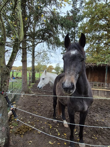 Mit viel Bedacht biete ich einen sehr sympathischen, noch ungerittenen Nachkommen von Aviador zum Verkauf an, der durch sein ausgeglichenes Wesen, seine Lernbereitschaft und seine schöne Ausstrahlung überzeugt. Er wird im Juni 3 Jahre alt und ist hier bei uns geboren und aufgewachsen. Er durfte bisher in Ruhe und mit viel Zeit jung sein, was sich heute in seinem klaren Kopf und seiner Gelassenheit widerspiegelt. Entsprechend ist er noch nicht geritten, dafür aber sehr gut und altersgerecht vorbereitet auf alles, was nun Schritt für Schritt kommen darf. Im täglichen Umgang zeigt er sich freundlich, aufmerksam und menschenbezogen. Er kennt bereits viele Alltagssituationen und ist entsprechend abgeklärt und unerschrocken: • anlongiert • kennt Bodenarbeit, Decken etc. • schmiede- und verladefromm • kennt Kinder jeden Alters • ist vertraut mit Hunden, Katzen, Hühnern und Schafen Er ist in einer gemischten Herde aufgewachsen und dadurch sehr gut sozialisiert, respektvoll im Umgang mit anderen Pferden und angenehm im täglichen Handling. 🔹 Abstammung: Aviador x Canstakko 🔹 Alter: wird im Juni 3 Jahre 🔹 Stockmaß: ca. 1,64 cm 🔹 Ausbildungsstand: ungeritten, altersgerecht vorbereitet 🔹 Charakter: ehrlich, ruhig, kooperativ, menschenbezogen In der Bewegung zeigt er sich taktsicher, ausbalanciert und mit schöner natürlicher Bewegungsqualität, sodass er beste Voraussetzungen für den gehobenen Freizeitsport mitbringt. Ein Pferd, das Freude an feiner Arbeit verspricht – ohne Hektik, dafür mit viel Potenzial für eine langjährige Partnerschaft. Gesucht wird ein liebevolles, förderndes Zuhause, in dem er weiter behutsam ausgebildet wird und als das geschätzt wird, was er ist: 👉 ein junger, ehrlicher Partner mit Herz und Perspektive. (Auf den letzten beiden Fotos ist die Mutter zu sehen)