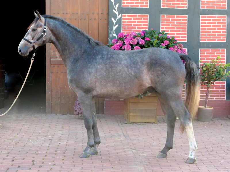 Captain Cook is an exceptional opportunity for anyone looking for a true buddy in horse form. He boasts correct conformation on a solid foundation. Still in growth, we expect an end height of approximately 16.1 hh. Raised naturally on large pastures, he is well-versed in the basics of foal handling, is calm at the blacksmith, and is easy to lead and groom. He is incredibly gentle in manner, very people-oriented, and consistently displays curiosity and bravery. He is accustomed to 24/7 turnout and pasture life, including periods in a loose box with plenty of space. According to his pedigree, he should demonstrate a clear double aptitude. His sire, Captain Müller, is successful in show jumping up to 1.20 m and has already achieved victories in M-level dressage competitions. He shows exceptional talent for Grand Prix movements and is currently being prepared for higher classes. His dam was successful in young horse classes and is also well-bred and skilled over fences. When free-running, Cook impresses with an incredibly active hind leg, a ground-covering stride, and plenty of energy over a strong back. He was castrated four weeks ago and has only been to the vet for vaccinations so far. A comprehensive X-ray clearance report is available, with no findings. Cook can be visited at any time—please feel free to contact us!