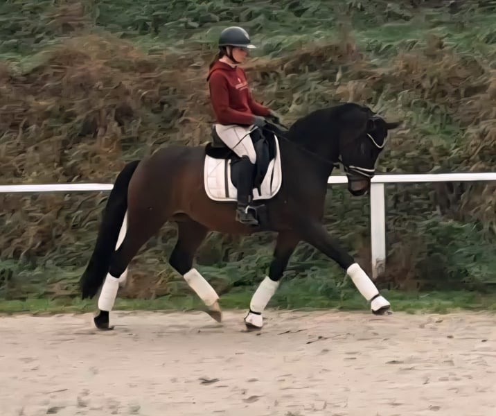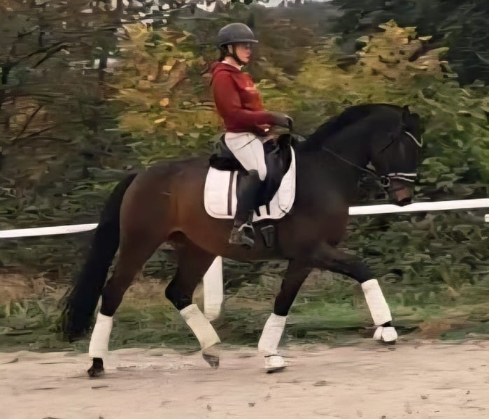 Da ich kürzer treten muss und meine Tochter im Reitsport mehr unterstützen möchte, gebe ich schweren Herzens meinen tollen Wallach ab. Leider kam dann doch alles anders als geplant.😢 Valentin ist ein echter Hingucker und bringt tolle Grundgangarten mit. Deckt auch grössere Reiter gut ab. Valentin ist schonend angeritten, mit Pausen zum Entwickeln – Dressurpferde A- Niveau. Altersentsprechend ausgebildet 3x in Reitpferdeprüfungen platziert Schmiede- und verladefromm Geimpft, entwurmt. Sehr lieb im Umgang, obwohl er noch so ein Jungspund ist. Herdenverträglich, kein Ekzemer, keine Unarten. Gute Hufe, vorne mit Eisen 💡 Extras: Allianz Premium Versicherung kann gerne übernommen werden (noch ungebraucht) Röntgenbilder können vom Interessenten gerne selbst durchgeführt werden. Ein Züchtertüv liegt vor und kann gerne eingesehen werden. Beim Züchtertüv ist ein unbedenklicher Minichip laut Tierarzt entdeckt worden . 📍 Probereiten & Kennenlernen: Probereiten gerne nach Absprache und mit meiner Ausbilderin möglich. Kosten Probereiten 25 €, die bei einem möglichen Kauf angerechnet werden. Da es mir schon sehr schwerfällt ihn abzugeben bitte ich nur um ernsthafte Anfragen.