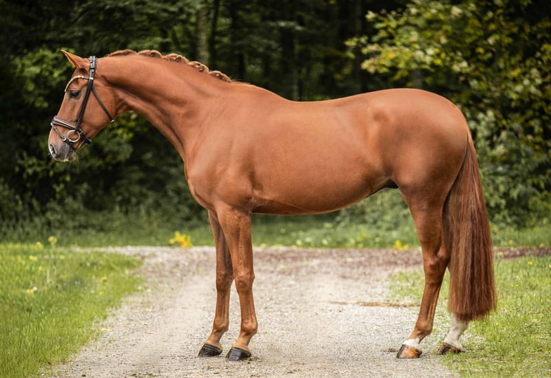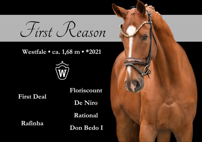 Dear interested parties, For appointment arrangements for trial rides, please send me a WhatsApp message. For further questions, I can be reached via WhatsApp during the day, and by phone best between 4 PM and 7 PM. I look forward to hearing from you. www.angelina-devittorio.de ⭐️First Reason⭐️ Age: 4 years (2021) Height: approx. 1.68 m Pedigree: First Deal x Rational/Don Bedo Training level: DrPf A level Vet check: Good current vet check including X-rays available For sale is a lovable, beautiful four-year-old chestnut gelding with three basic gaits of exceptional quality. This highly talented young horse impresses with an absolutely clear mind and an exceptionally good, reliable character. With his great attitude, willingness to learn, and calmness, he is already a true amateur horse. He presents himself as a very easy training horse with excellent prospects for higher-level sport. His top basic quality and rideability make him a horse that brings joy every day. He shows absolute nerve strength – even in unfamiliar surroundings – and is not easily impressed by external influences. In daily handling as well as under saddle, he impresses with excellent cooperation and a pleasant riding feeling that particularly highlights his quality. For his age, he is already very mature – both mentally and physically – and ready to continue his training in a new home. ⚜️Tel: 0171-3438949 ⚜️a.devittorio@web.de ⚜️https://www.ehorses.de/angelinadevittorio Facebook and Instagram Angelina De Vittorio