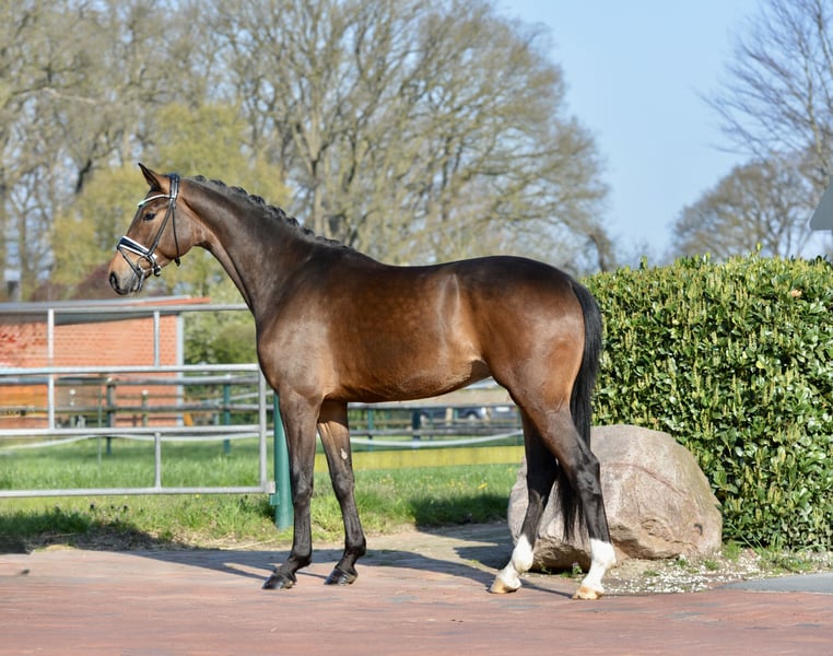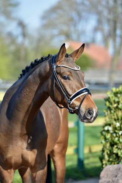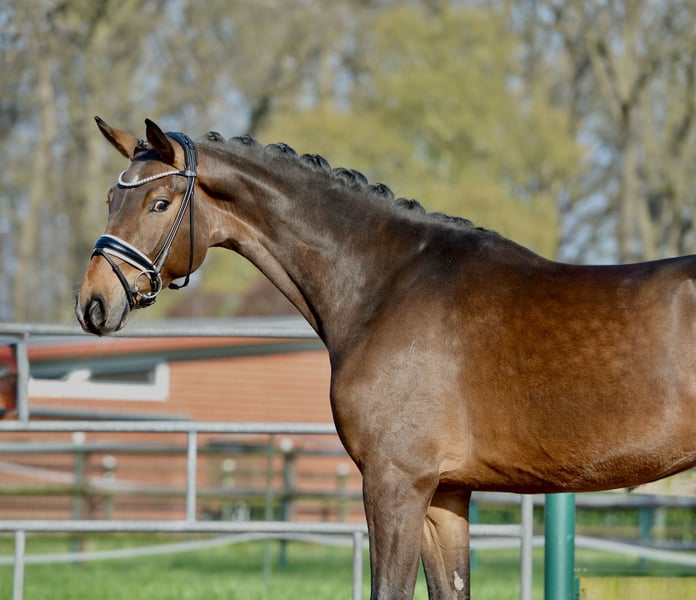 A truly charming four-year-old with an almost unbeatable walk and excellent temperament – this is "Easy," as Every Time is affectionately called. Anyone looking for a genuine gem in the stable will find him to be just that – he impresses with his charm, outstanding character, always friendly and human-oriented, focused under saddle, and always on the rider’s side – exactly as one would wish! Easy comes directly from the breeder, was carefully backed, had a rest during his three-year-old year in the summer, and has been under saddle for several months now. In handling, he is a real sweetheart, demonstrating natural rideability, a superb walk, a beautiful canter, and elastic trot work. His sire, Ellis, descends from the Grand Prix sire Escolar and was himself a three-time finalist at the Bundeschampionate and HLP winner with a score of 9.09 in dressage at the 14-day test in Adelheidsdorf and 9.12 in the sport test in Münster. He has produced licensed stallions and successful sport horses. Ellis is full brother to Espe, who won multiple medals at the European Championships for Juniors and Young Riders and is the dam of the successful Esquire. The dam’s sire, Sir Donnerhall, brings sportily successful elegance into the pedigree. Easy’s dam also produced the licensed son of Le Formidable, Lorenzi, as well as numerous sport-successful offspring. The dam line includes, among others, Davi G, who competed up to Inter II, Hollister/Inter I, Love to Fly/CCI3*, and many more. Current X-ray test available.