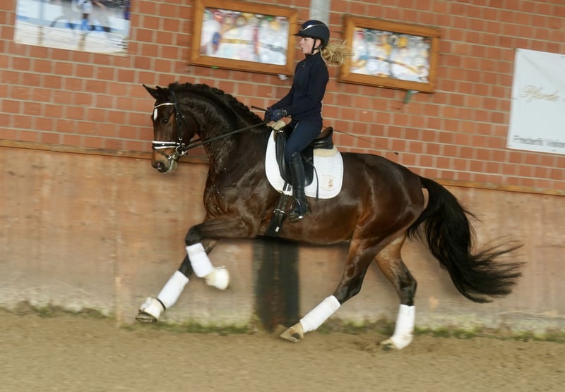 Verkaufe hochveranlagten Westfalen-Wallach, geb. 2022, mit beeindruckendem Stockmaß von 168 cm. Der braune Wallach ist ideal für den Dressursport geeignet und zeigt viel Talent sowie eine vielversprechende Grundausbildung. Er ist freundlich im Umgang und besitzt eine angenehme Charakteristik. Perfekt für ambitionierte Reiter, die einen jungen, vielseitigen Partner suchen. Er entspringt einem Holsteiner Mutterstamm, gespickt mit viel Springhenetik. Ablauf & Kraft machen diesen genmix ein Interessant. Bei Interesse stehe ich gerne für weitere Informationen und eine Besichtigung zur Verfügung.