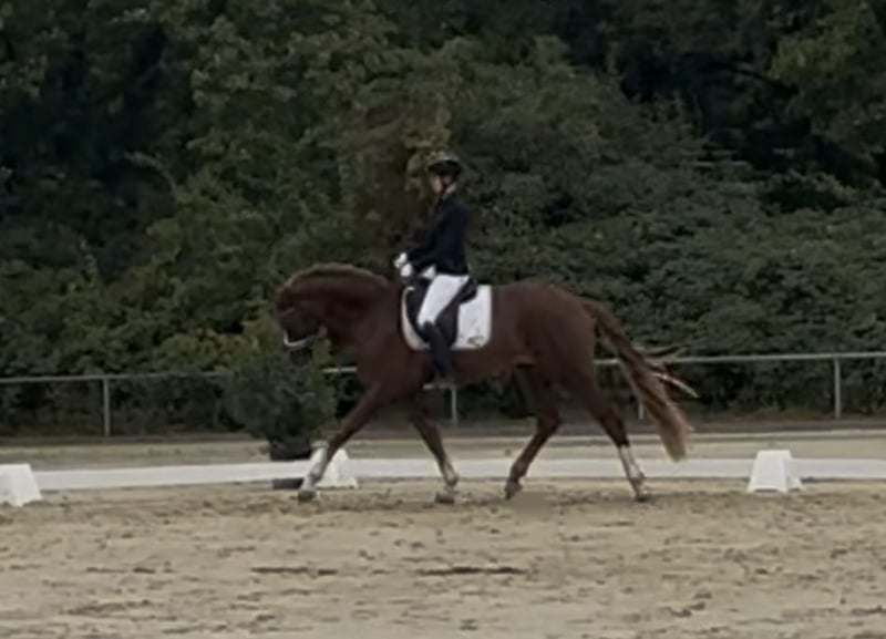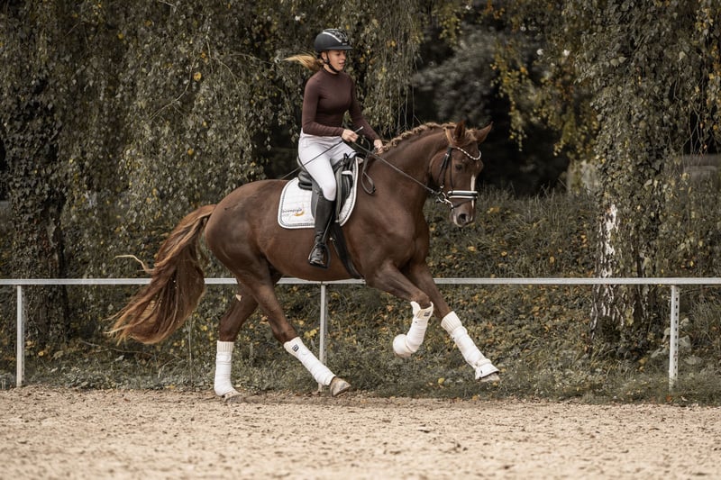 Zum Verkauf steht ein besonders typvoller und ausdrucksstarker Westfalen-Wallach von Baccardis Best x Fürst Romancier in der tollen Farbe Dunkelfuchs. Geboren 2022 ist er nun 3,5 Jahre alt und ist bereits 1,70 groß Mokka überzeugt mit drei überragenden Grundgangarten, die keine Wünsche offenlassen: ein kraftvoller, schwungvoller Trab, ein bergauf Galopp sowie ein raumgreifender Schritt. Seine natürliche Bewegungsqualität und sein Talent lassen bereits jetzt erkennen, dass ihn eine große Zukunft im Dressursport erwartet. Mokka springt bereits fliegende Wechsel auf beiden Seiten, was seine hervorragende Balance und Lernbereitschaft unterstreicht. Er ist seit Mitte des Jahres schonend angeritten und ging bereits zwei Reitpferdeprüfungen, in denen er sich sehr souverän und gelassen präsentierte mit Noten über 7 Zur Abwechslung springt er auch mal kleine Kreuzchen und nimmt regelmäßig an einer wöchentlichen Cavaletti-Stunde teil, was er mit viel Freude und Übersicht meistert. Er ist wirklich für jeden Spaß zu haben und macht alles mit, was man ihm anbietet. Im Umgang und unter dem Sattel zeigt er sich mit einem Traumcharakter – eine echte 10 von 10! Er ist im Kopf schon wie 20: immer cool, verlässlich und absolut nervenstark. Egal ob 10 andere Pferde in der Halle sind, Reklame flattert oder das bunte Vierecker bleibt er stets gelassen und bei seinem Reiter. Auch beim Ausreiten, Verladen oder auf Turnieren ist er einfach brav und unkompliziert. Trotz seines Alters muss er vor dem reiten nicht ablongiert werden und hat unter dem Reiter noch nie einen falschen Tritt gemacht. Ein junger Wallach mit bestem Interieur, großem Herz und überdurchschnittlicher Bewegungsqualität – ein Pferd, das jeden Tag Freude macht und auf eine vielversprechende Zukunft im Dressursport hoffen lässt. Röntgenbilder inkl Hals und Rücken liegen ohne Befund vor. Er wird nur in die besten Hände verkauft. Da wir kein Reit-Tourismus unterstützen werden für das Probereiten 30€ berechnet.