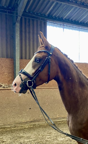 **Sales Advertisement: Dream Dressage Horse for Sale** For sale is a beautiful Westphalian gelding, born in 2022. With an impressive height of 170 cm and his elegant dark chestnut color, he catches everyone's eye. His two blue eyes and four white socks are particularly striking. This talented gelding is perfectly suited for dressage and already shows promising potential in his training. At the moment, he is being lunged in accordance with his age, and the price will increase with further training. He impresses with his quality of movement and his friendly character, making him an ideal partner for ambitious riders. He is well-mannered, easy to handle, and has a pleasant temperament. Whether for competition or as a leisure horse – this Westphalian offers numerous possibilities. If you are interested or would like more information, please feel free to contact me. Don't miss this opportunity!