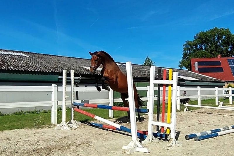 Chico es un potro extremadamente hermoso, atlético, de patas largas, que inspira con mucha elasticidad. En términos de carácter, Chico se presenta increíblemente genial e inteligente. Es muy seguro de sí mismo, fácil de manejar, dulce y orientado a las personas. El padre Coeur de Bella Donnas (nacido en 2018) se convirtió en el célebre ganador de la Liga de Licencias de Westfalia. Se le puso la piel de gallina y puro entusiasmo durante sus actuaciones en salto libre. Equipado con una elasticidad excepcional, máxima capacidad y tecnología brillante, Coeur de Bella Donna domina sin esfuerzo incluso las dimensiones más altas. Particularmente impresionante es su visión natural y su inteligencia en el salto, que se hizo particularmente evidente en la nueva disciplina de licencia de la Licencia de Westfalia, el salto libre con un solo salto. El gerente de cría Thomas Münch concluyó: "Un atleta de la cabeza a la suela con impresiones de salto de primera clase. Entramos en éxtasis". La madre también combina el salto de sangre con un descenso de Pontifex, Polydor, Acord II y Argentinus y ella misma tuvo éxito en los deportes. Con Calle vom Kiez, medio hermano de Chico, ya se ha comercializado con mucho éxito como el mejor caballo de la Subasta Juvenil de los niños de 3 años. PD: Video a petición vía Whatsapp