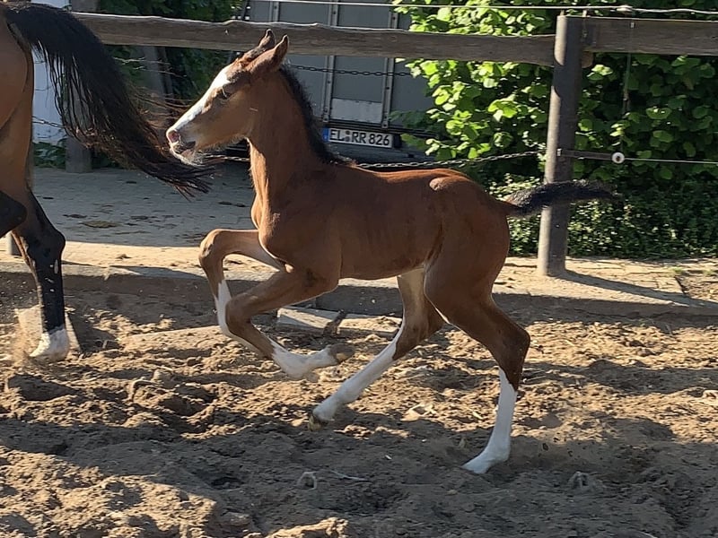Directly from the breeder and firsthand, a very special young horse is available for sale. His training began as a stallion prospect for pre-selection. Even at a young age, he was well-behaved and focused, handling all exciting appointments with ease. Later, during initial riding, he remained equally obedient and trustworthy. Throughout his time under saddle, he has never bucked or reared. Currently, he has proven to be traffic-safe (including tractors, trucks, etc.) and is equally well-behaved in the outdoor arena, riding halls, or large stadiums, whether ridden alone or with other horses. He is currently ridden without lunging, directly from the farm onto a road, crossing a bridge about 700 meters to the riding club grounds, as if it were second nature, even on a long rein. His pedigree (Cornet Obolensky x Balou du Rouet x Lord Caletto x Pilot) reads like a walk through the top percentages of show jumping sires. The breeding relevance of Cornet and Balou is well known, and it would be too extensive to elaborate here. His dam is also a breeding jewel of the future, as her second foal was recently licensed and sold to France. Thus, this gelding is the proud brother of licensed stallions on both sides of his pedigree. This overall package supports the idea that, with proper development, he can make significant progress in sport. A current veterinary certificate (legs, back) is available, and he is otherwise healthy, robust, and solid. He was raised appropriately in herds on summer pastures and in an open stable during winter. He is absolutely load-friendly, even when alone, and also shoe-friendly, including hot shoeing. He currently wears shoes due to frequent road work, but under normal workload, he is comfortable barefoot and has no conformational issues. He is socially very compatible and gets along with everyone. The price is discounted considering his quality, as we do not have the capacity to further develop him ourselves. He is well-behaved under amateur riding but has not yet jumped under saddle. For further questions or to arrange a non-binding trial ride, please feel free to contact us. Viewings are available at short notice and can be scheduled flexibly.