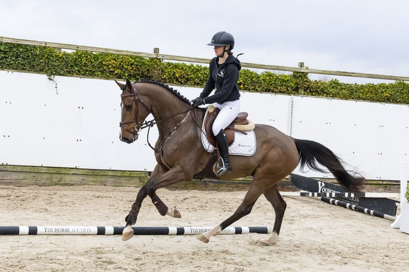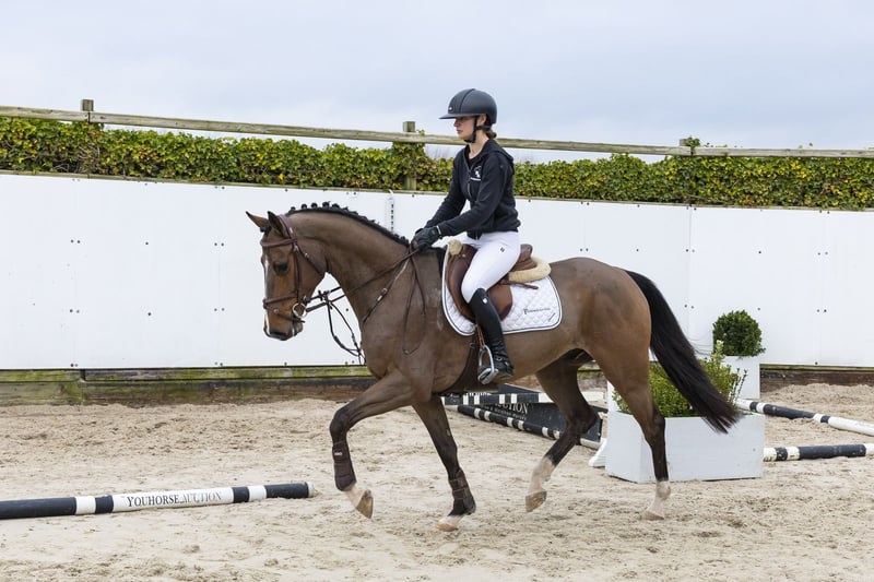 Harbinger Blue is een paard met een droomafstamming en dat zie je direct terug in zijn manier van springen en bewegen. Een compleet paard qua model, dat goed in elkaar zit en zowel op de sprong als in de rijdbaarheid kwaliteit laat zien. Hij is nog maar kort onder het zadel, maar toont nu al veel lichtvoetigheid, balans en een natuurlijke manier van bewegen. Op de sprong valt hij op door zijn snelle afzet, zijn overzicht en zijn goede techniek. Hij springt met veel manier en laat zien dat hij het werk makkelijk oppakt. Een paard met bloed, kwaliteit en een natuurlijke aanleg om te springen. Hij heeft een natuurlijke motor waarbij het achterbeen goed onder het lichaam komt, wat hem prettig maakt in het rijden en bijdraagt aan zijn balans en rijdbaarheid. Een zeer interessant paard voor de toekomst. Vader Hickstead Blue springt op 1.40m niveau en is een zoon van Hickstead White (1.60m), uit de bekende lijn van Hickstead. Moeder Alya-Catokia is een dochter van Catoki (1.60m) en gaat terug op de sterke Holsteiner lijn van Caretino en Landgraf I. De moederlijn is uitzonderlijk sterk en brengt meerdere paarden op topniveau: Quintana Roo 2 (1.60m) Verdi TN (1.60m–1.70m) Holy Key (1.50m) Chrysler Key SR (1.50m) Cafe de Paris (1.45m) Supertramp SR Z (1.45m) Natkingkey SR (1.35m) meerdere paarden op 1.30m–1.60m niveau Een stam met bewezen prestaties tot op het hoogste niveau.