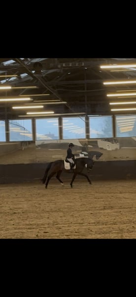 Zum Verkauf steht unser Wallach Valentin von Vivat Rex x Finest, der bereits mehrfach erfolgreich in Reitpferdeprüfungen platziert wurde und in dieser Saison direkt auf Anhieb seine erste Dressurpferde A für sich entscheiden konnte. Aktuell befindet er sich altersgerecht in weiterer Ausbildung und arbeitet motiviert an den Lektionen der Klasse L. Er überzeugt mit überdurchschnittlich guten Grundgangarten, Rittigkeit und einer positiven Arbeitseinstellung. Aufgrund von Aufgabe des Reitsports wird unser Valentin schweren Herzens abgegeben. Uns ist es wichtig, dass er ausschließlich in beste und passende Hände abgegeben wird! Gesundheit: Leichter Rückenengstand sowie ein kleiner Mini-Chip vorhanden der laut mehreren Tierärzten ohne Bedenken ist. Klinisch ist er komplett unauffällig. Weitere Infos: Bei ernsthaftem Interesse und mehr Informationen können Sie sich gerne melden.