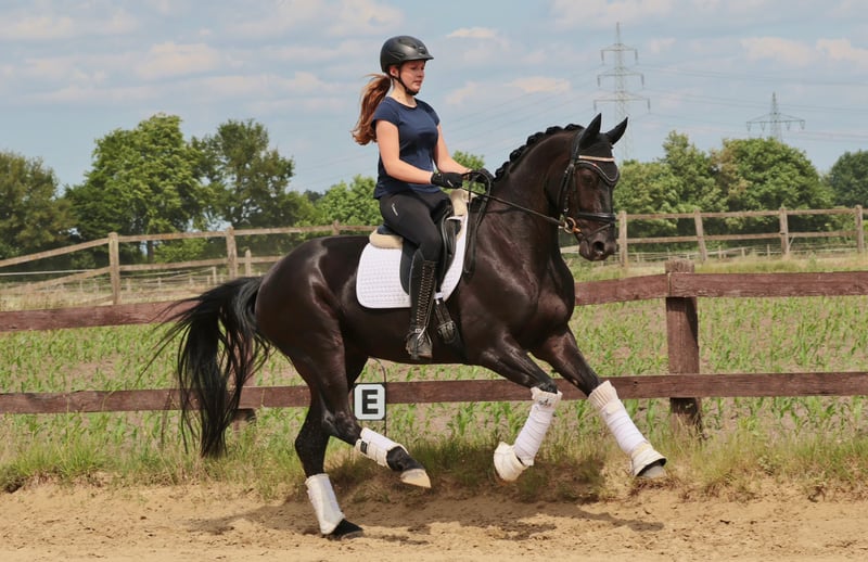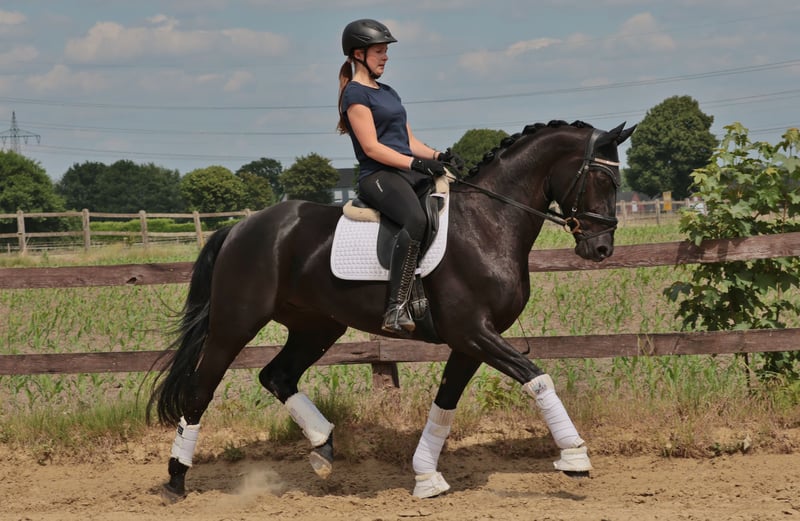 Zum Verkauf steht ein 5-jähriger, schwarzer Wallach mit einer Größe von 168 cm aus der Abstammung Barcelo x Rock Forever. Er überzeugt durch gute Grundgangarten, ist angenehm leicht zu reiten und dabei stets fein in der Hand. Sein Charakter ist brav, zuverlässig und unerschrocken, wodurch er sich auch im Alltag unkompliziert zeigt. Der Wallach ist schmiede- und verladefromm und ein rundum angenehmer Partner für den Sport. Aktuell ist der A Dressur sicher und die ersten L- Lektionen meistert er gut. Bei Interesse gerne melden unter der 0172/7453930, per WhatsApp, Telefon oder Chat.