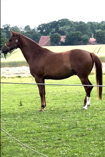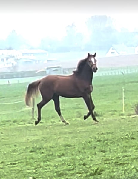Hickstead White • Cadora von Cador ist seine Abstammung . Hickstador ist erst seit November letzten Jahres unter dem Sattel und entwickelt sich rasant. Seit Ende Januar 2026 ist er bei einer Bekannten die dann angefangen ist ihn Springmässig zu fördern. Nach jetzt sechs Wochen Springförderung hat er schon die ersten Schleifen auf Turnier gesammelt und macht das mit der gleichen Sicherheit wie seine Außergewöhnliche Mutter Cadora die sieben jährig schon in S erfolgreich war und deren jüngere Schwester auch in S siegreich ist. Cadora wurde durch einige Sachen sportlich ausgebremst ein Weltklasse Springpferd zu werden unter anderem Corona Ausbruch ,so das ich mit ihr gezüchtet habe und jetzt vier unglaubliche Kinder von ihr habe. Hickstador steht Perfekt da und ist Bildschön, er ist brav und sehr rittig für die kurze Zeit die er erst geritten wird und zeigt noch mehr Klasse als seine tolle Mutter schon hatte.